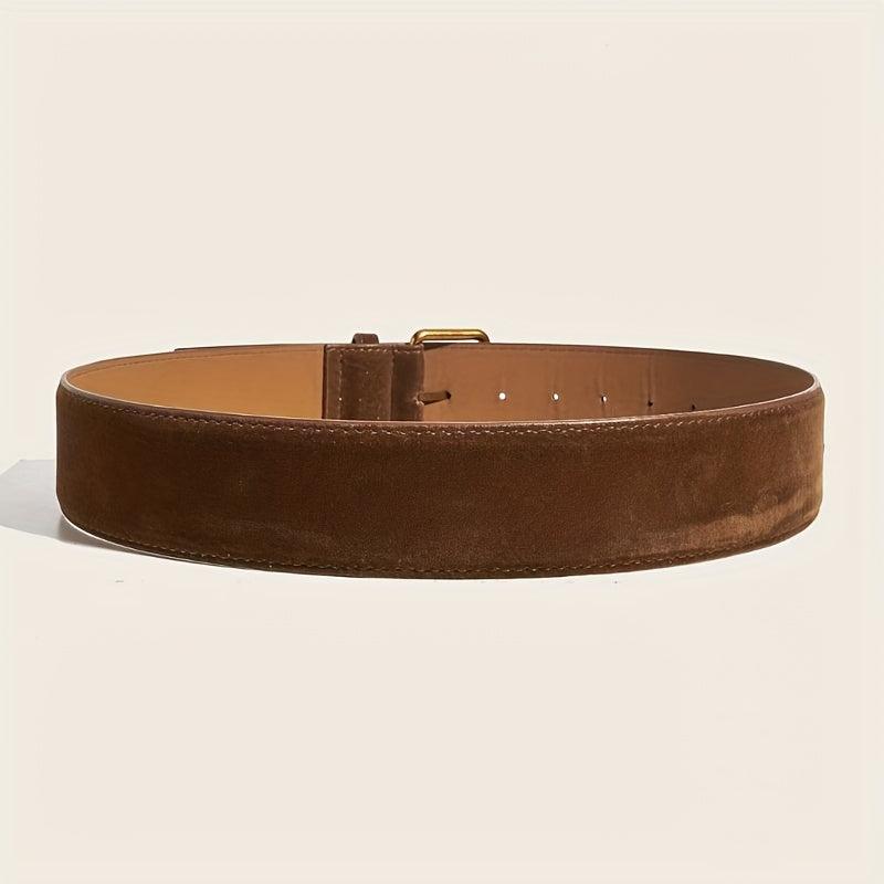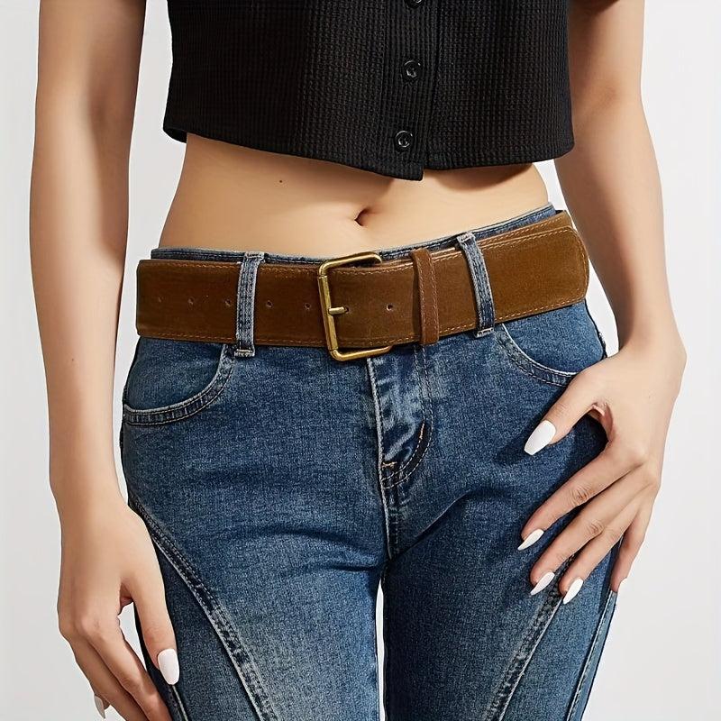 Elevate your outfit with this stylish wide brown belt featuring a golden square buckle. Perfect for casual outings, evening dates, and festive occasions.