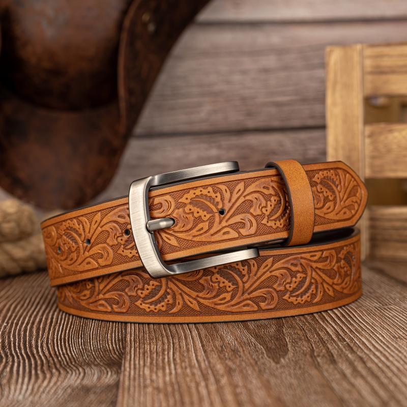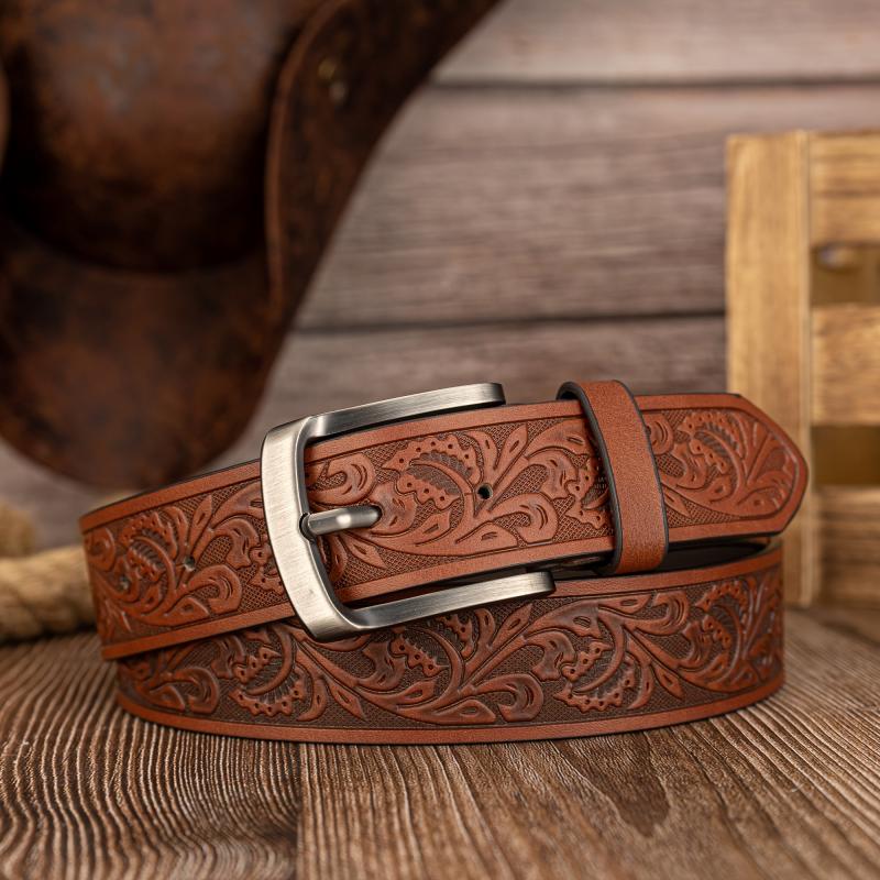 This needle buckle belt features a vintage leaf branch design with embossed details. Made from high-quality PU leather, it adds a stylish touch to any outfit.
