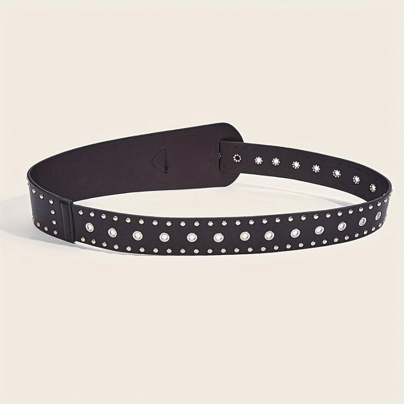 Add a touch of edge to your outfit with this vintage-inspired waist cincher belt. Made of PU leather with full studded accents and an adjustable metallic buckle, it's perfect for dresses, skirts, and casual to evening outfits.