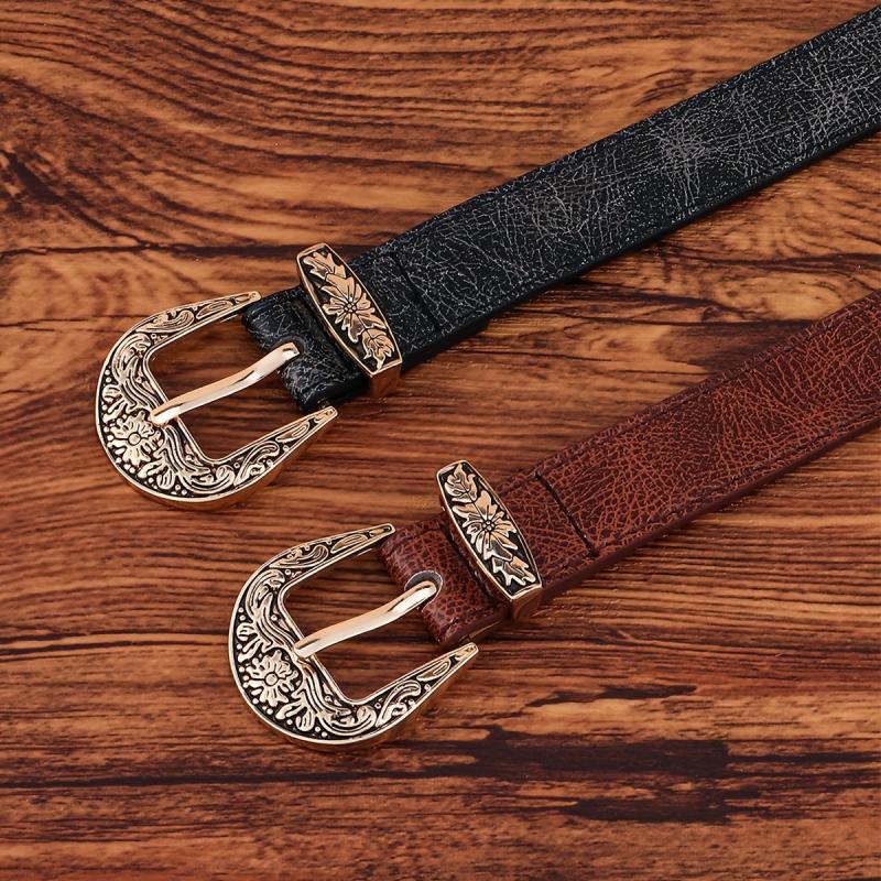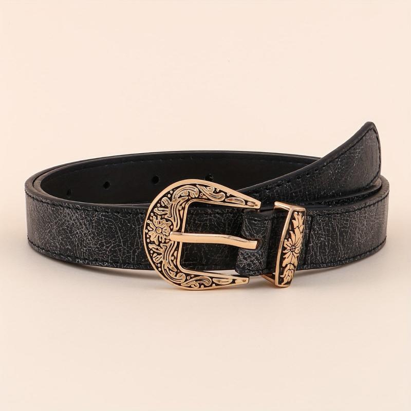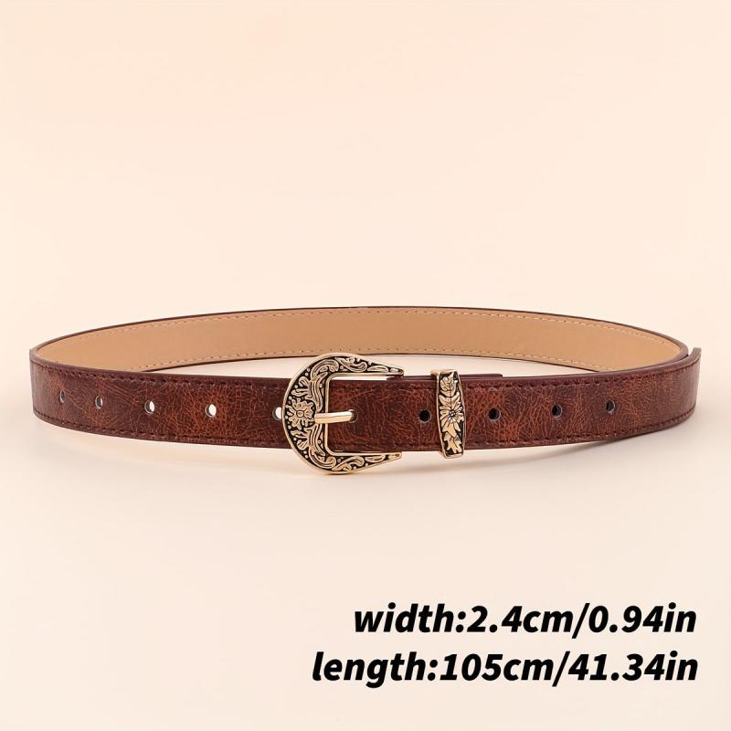Vintage Punk Embossed Metal Buckle Women's Belt Distressed Golden Tone