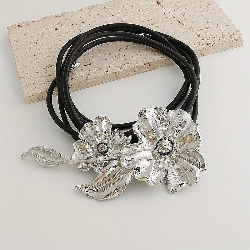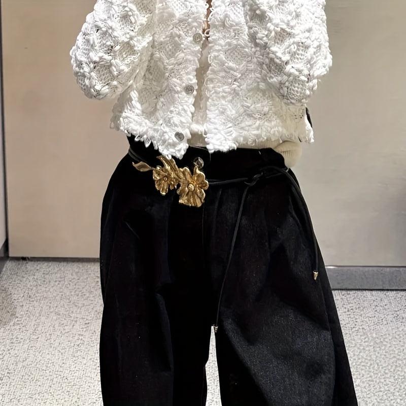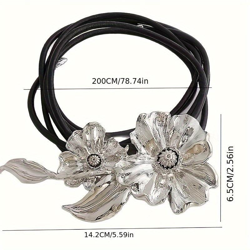 Add a bold touch to your outfits with this punk style waist rope belt featuring an exaggerated metal flower and sequin embellishments. Perfect for pairing with dresses, jeans, and skirts.