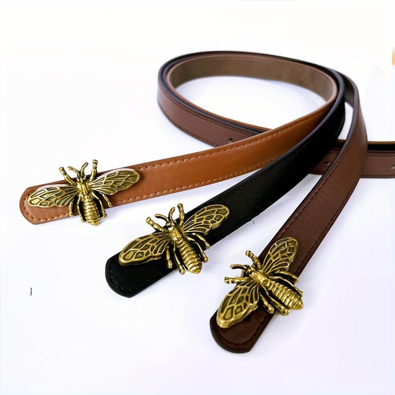 Add a touch of vintage charm to your outfit with this small bee waist belt. Made of durable denim, this versatile belt complements both pants and dresses.