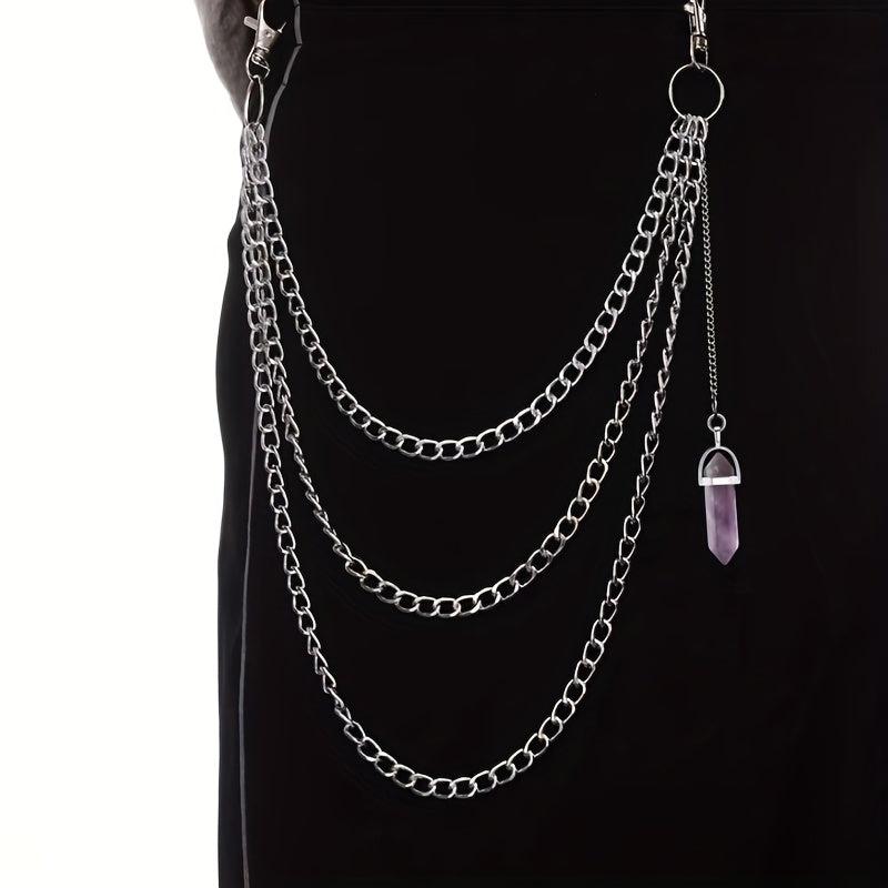 Add a touch of hip hop and street style to your outfit with this adjustable denim belt. The natural stone pendant and alloy layer buckle give it a unique look.