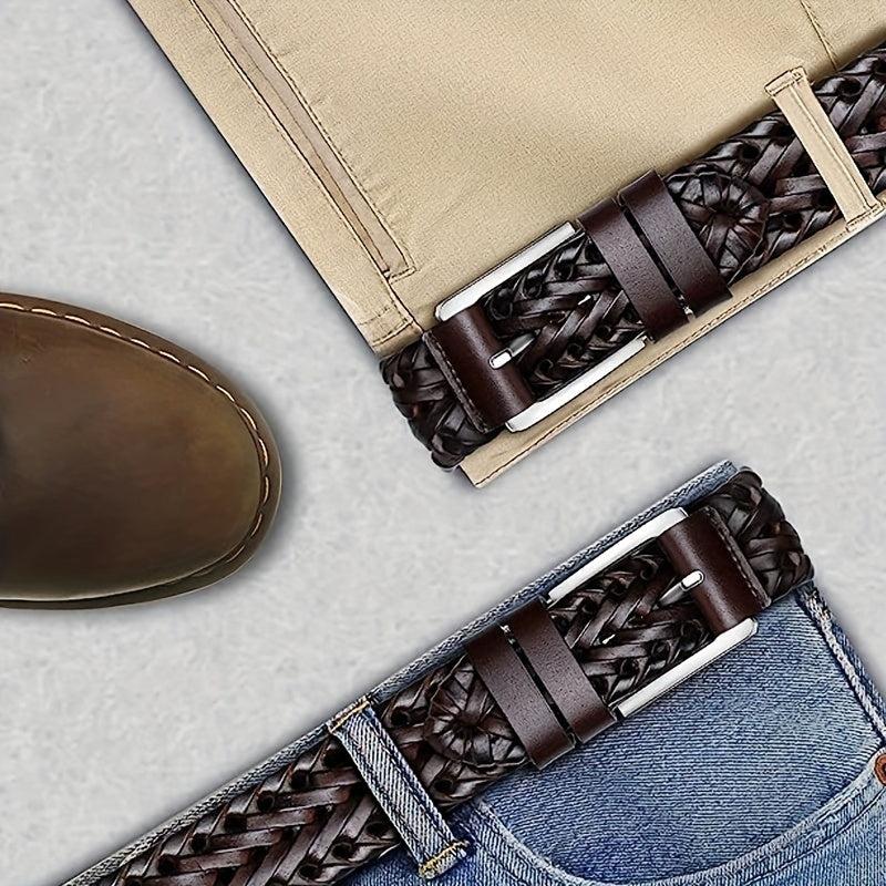 This leather belt is the perfect accessory for jeans and casual wear. It is made of high-quality leather and features a stylish square alloy buckle. Ideal gift choice for men.