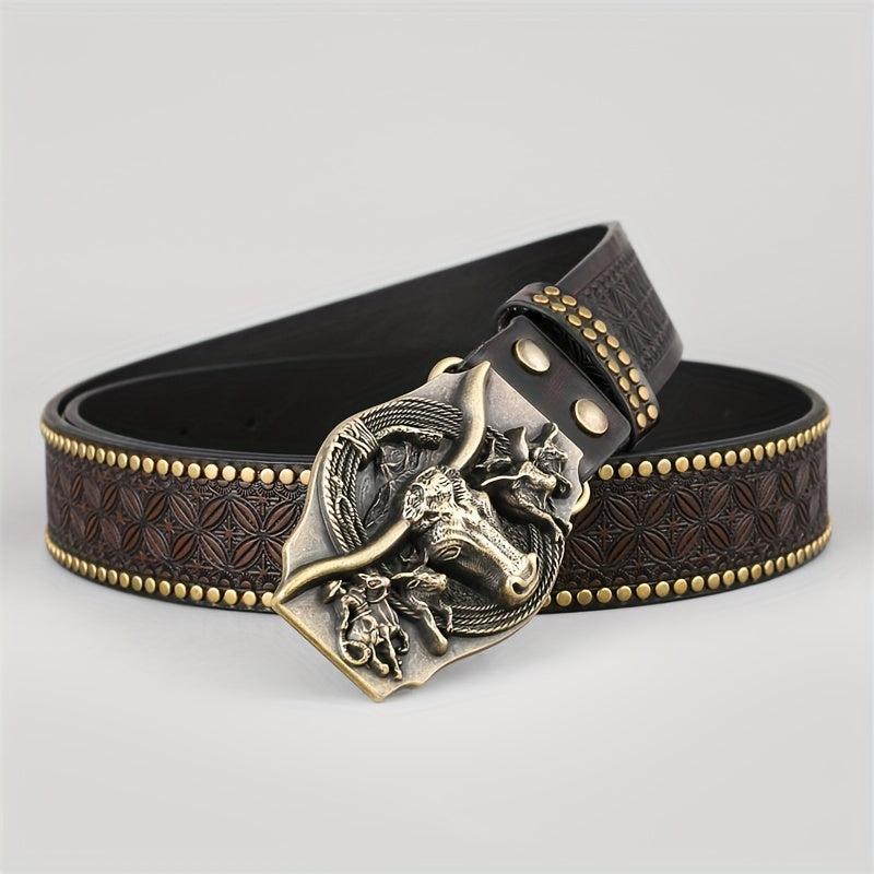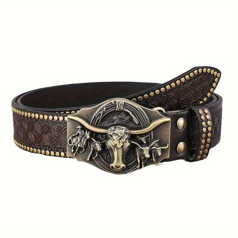 This unique vintage golden yellow 3D long horn alloy bull head buckle is perfect for adding a touch of western cowboy style to your outfit. Ideal for your vacation wardrobe.