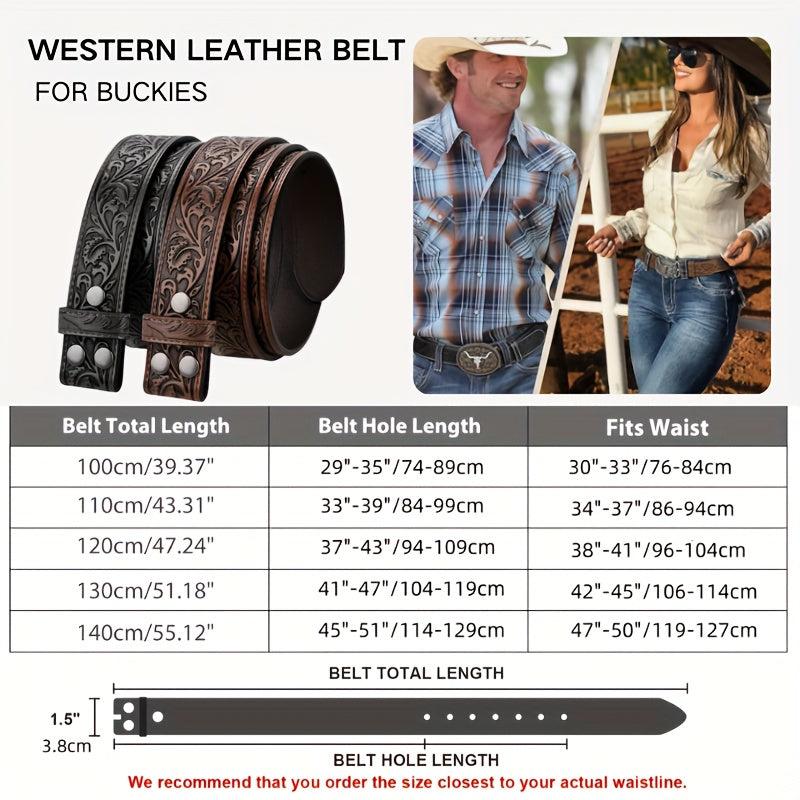 Embrace your inner adventurer with these sturdy and fashionable Western split leather belts. Suitable for both men and women, these belts are perfect for cowboy and cowgirl gear.
