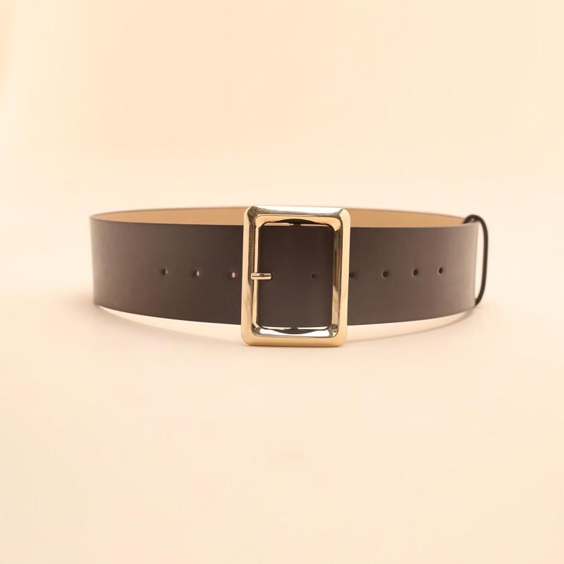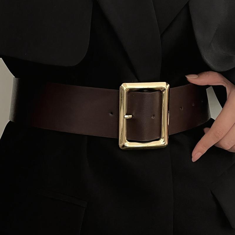 Add a stylish touch to your dress or coat with this solid waistband girdle featuring a large square pin buckle.