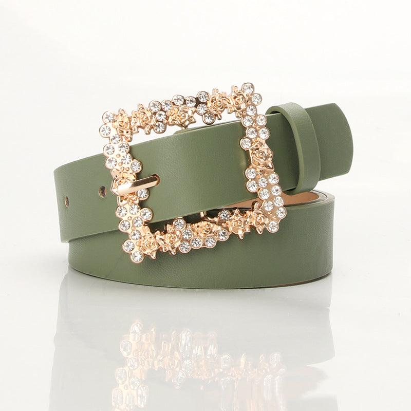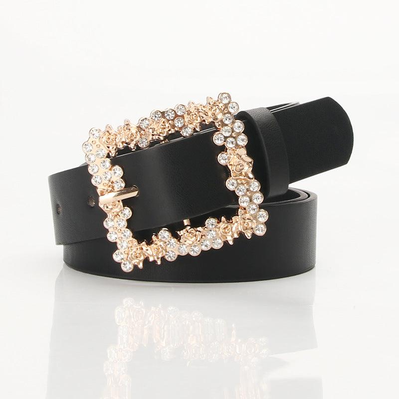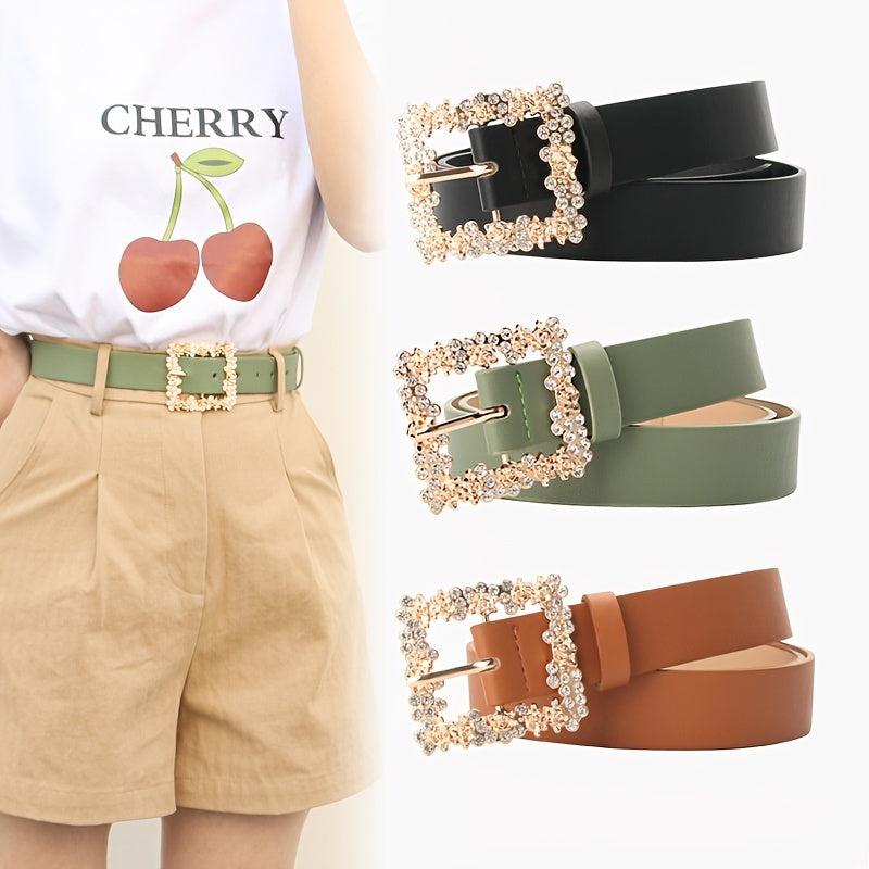 Elevate your style with this rhinestone pin buckle belt that adds a touch of sparkle to your outfit. Perfect for accessorizing dresses and enhancing your look.