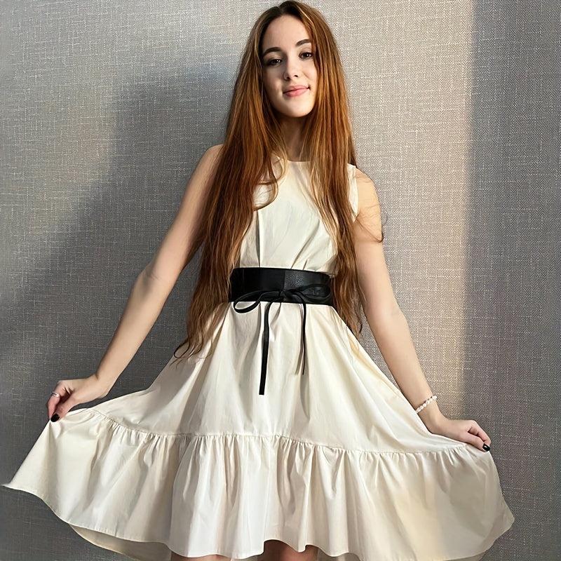 Add a chic touch to your outfits with this wide waist belt featuring a bowknot design. Perfect for dresses, tops, coats, and both business and casual looks. Made from non-textile material with no feathers.