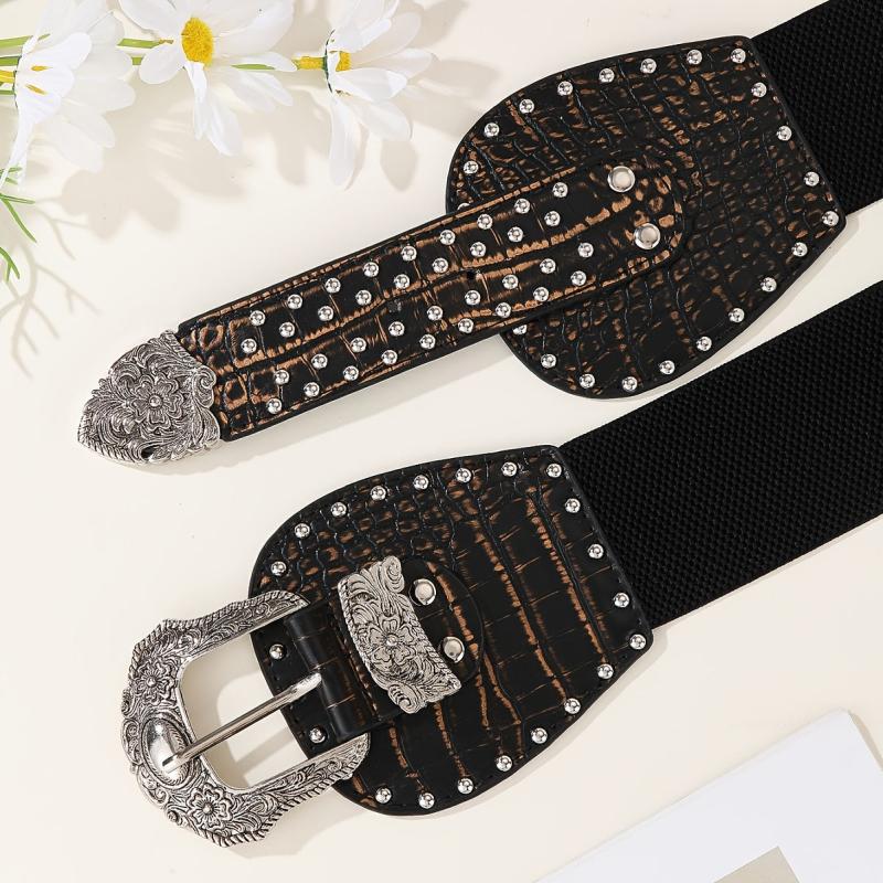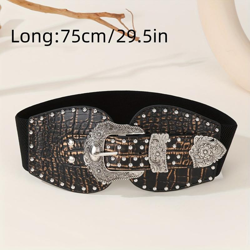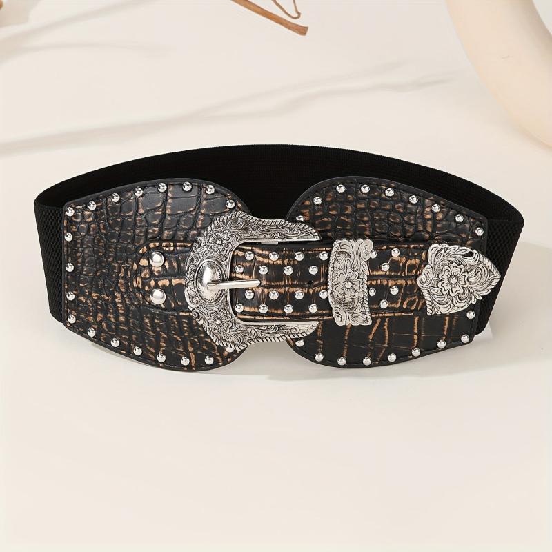 Get a retro vibe with this embossed crocodile texture wide belt featuring double alloy buckles. Perfect for daily wear, parties, and dates. Hand washable for easy maintenance.