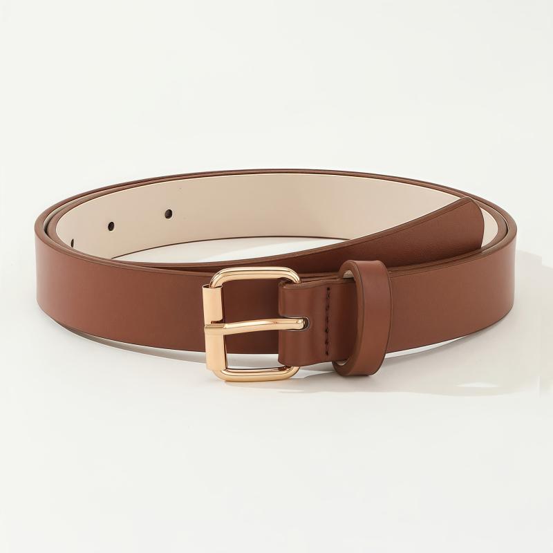 Elevate your outfit with this stylish faux leather belt featuring a golden buckle. Ideal for pairing with dresses, jeans, or casual wear.