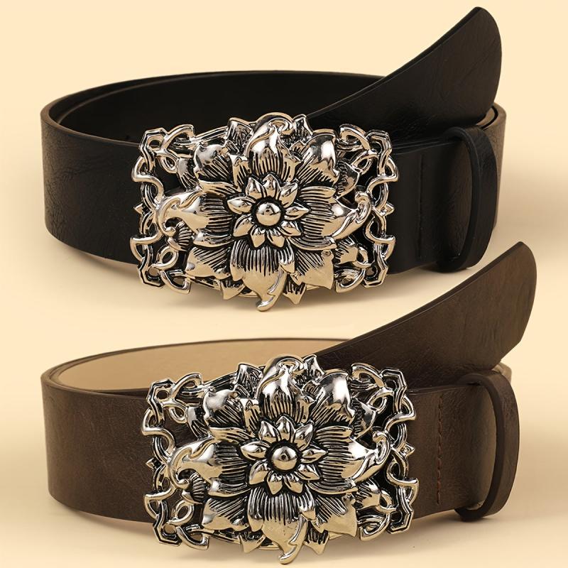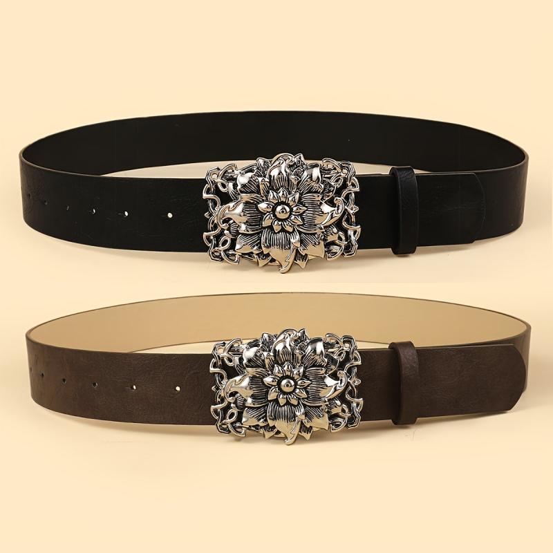 This PU retro belt features a carved buckle design with an ethnic bohemian style, perfect for adding a unique touch to your outfits. Suitable for casual daily outings.