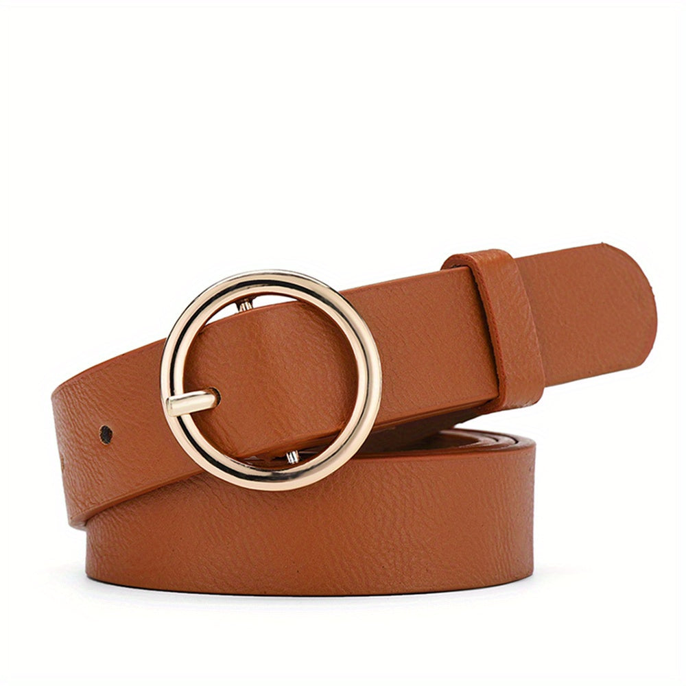 Add a vintage touch to your outfit with this stylish round buckle thin belt. Perfect for jeans, cargo pants, and skirts. Available in coffee color.