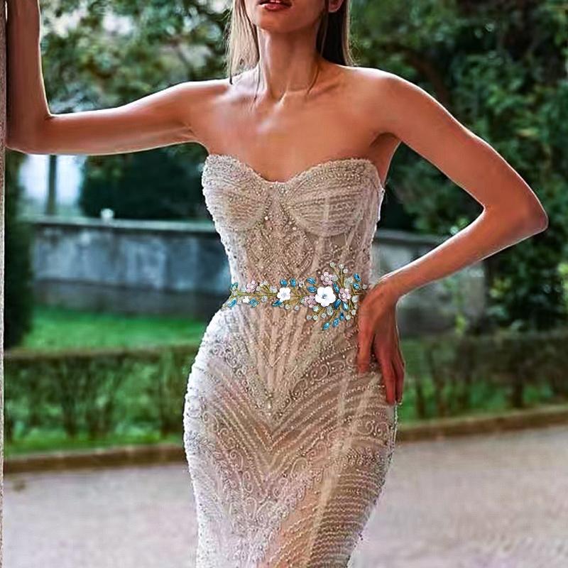 Add a touch of elegance to your outfit with this adjustable short belt featuring rhinestones and hand-beaded floral accents. Perfect for casual outings, weddings, parties, and daily commutes.