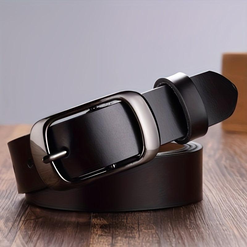 Add a touch of vintage charm to your outfits with this reversible cowhide belt featuring a metallic pin buckle. Perfect for both casual and formal occasions, this wide belt is adjustable for a comfortable fit.