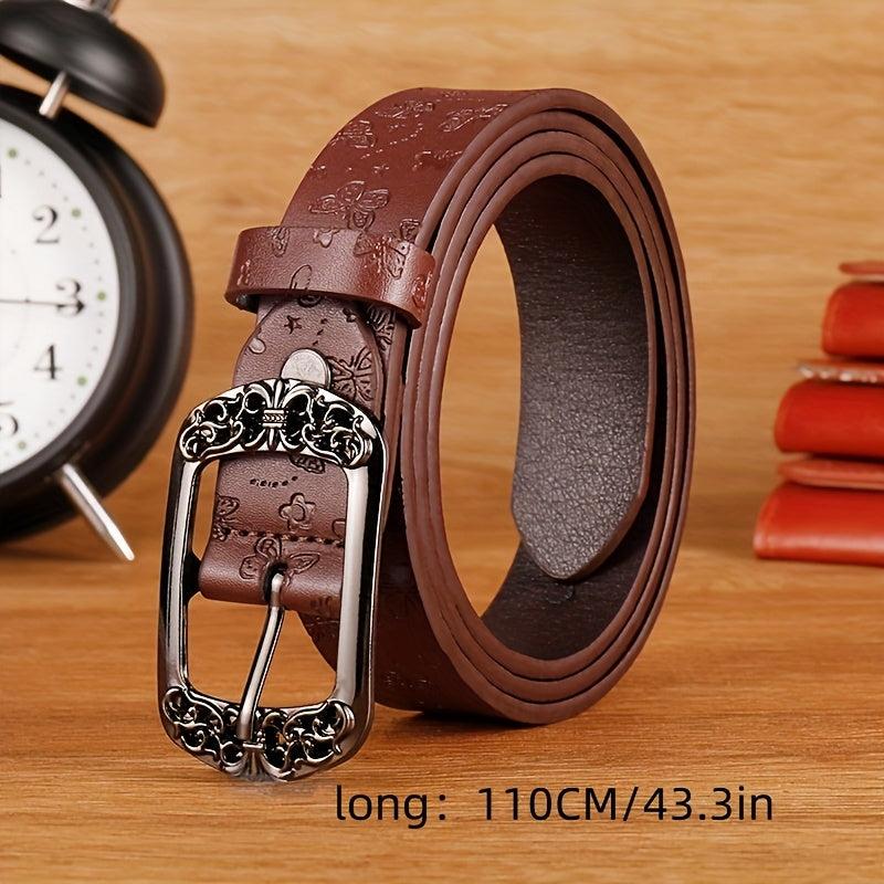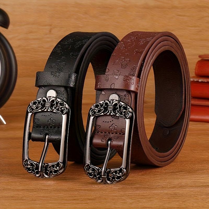 Elevate your weekend casual look with this stylish faux leather belt featuring intricate floral patterns. Perfect for pairing with jeans or dresses.