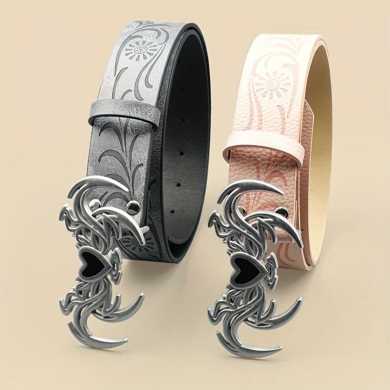 Add a punk-inspired touch to your outfit with this vintage Y2K belt featuring an alien and heart design. Made from durable PU material with a stylish alloy buckle, this belt is versatile and perfect for dresses, jeans, and shirts.