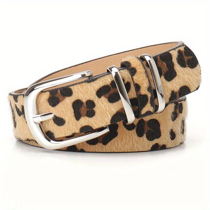Add a touch of punk rock flair to your outfit with this stylish leopard print belt. The faux leather design features a unique alloy buckle and chain detail, perfect for casual or edgy looks.