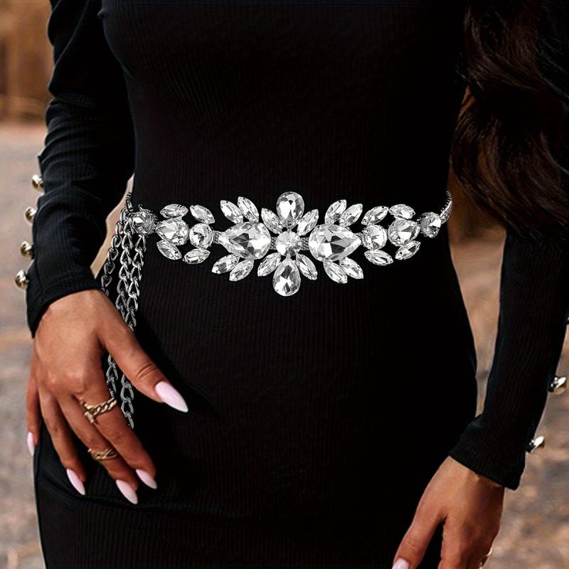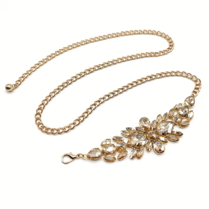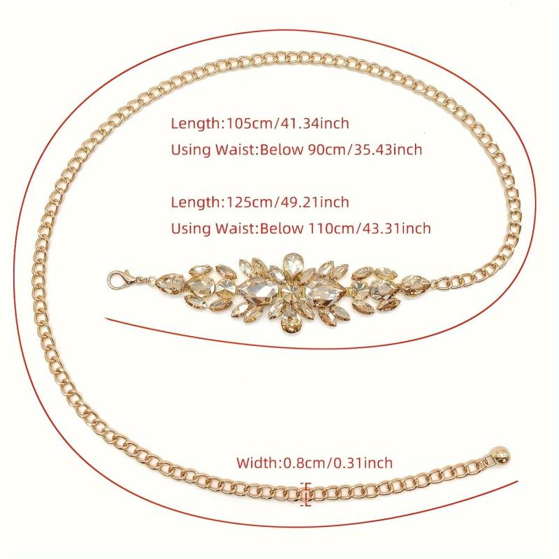 Elevate your outfit with this sweet style metal chain belt featuring rhinestone studs. Perfect for parties and weddings, it adds a touch of glamour to your look.