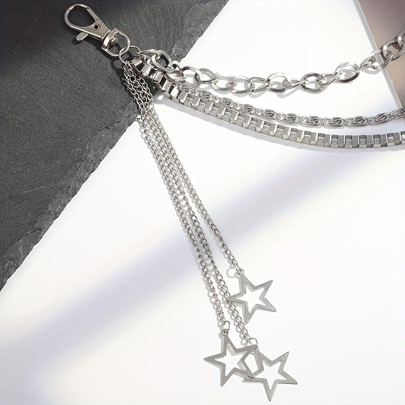 Add a touch of edgy charm to your outfits with this Y2K star pendant chain belt. Perfect for casual streetwear, college style, and everyday looks.