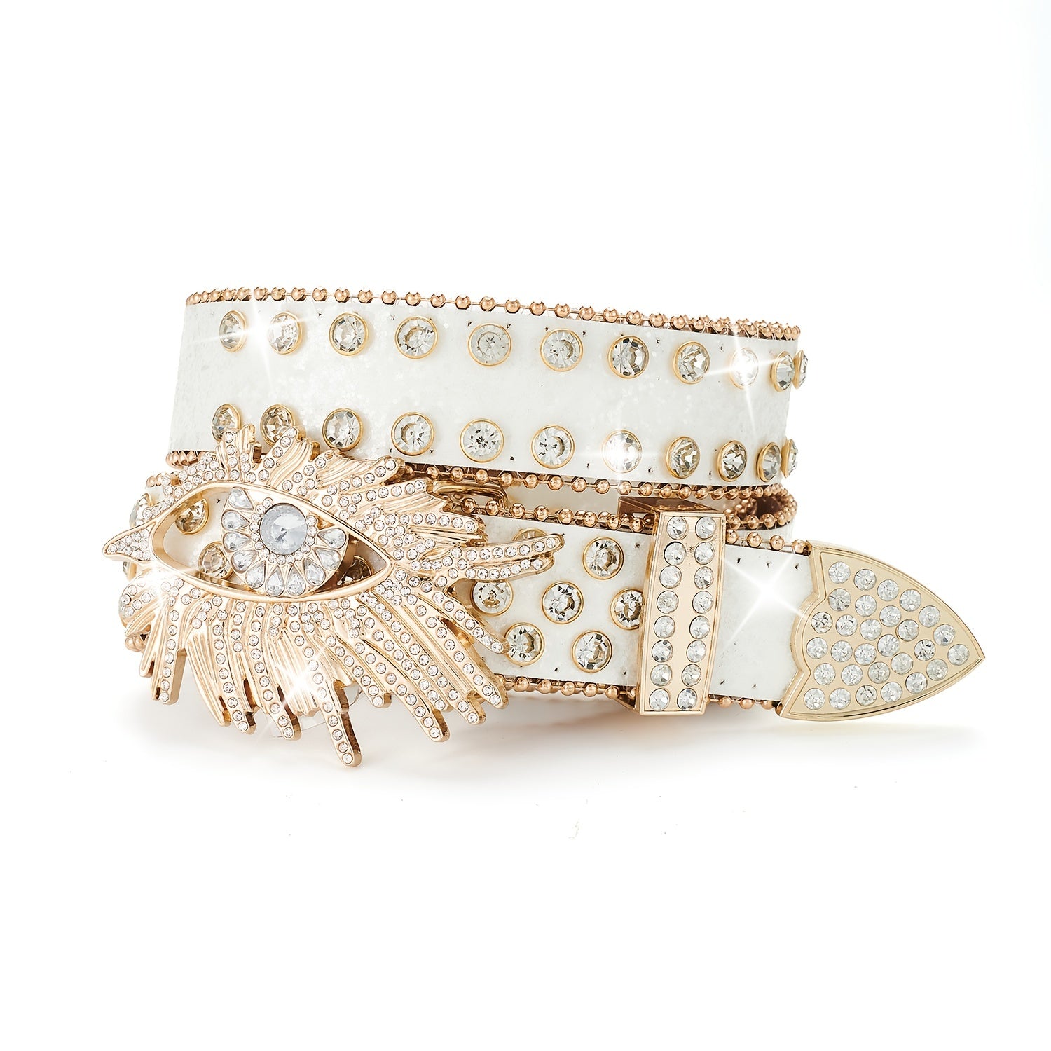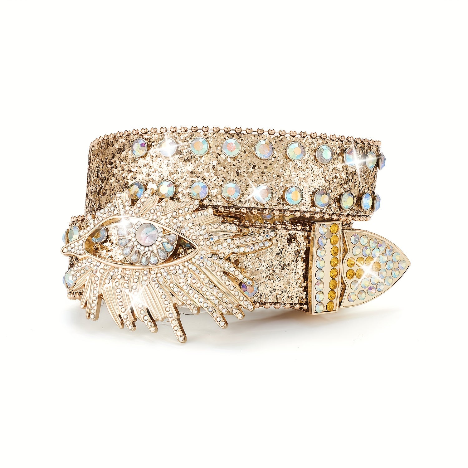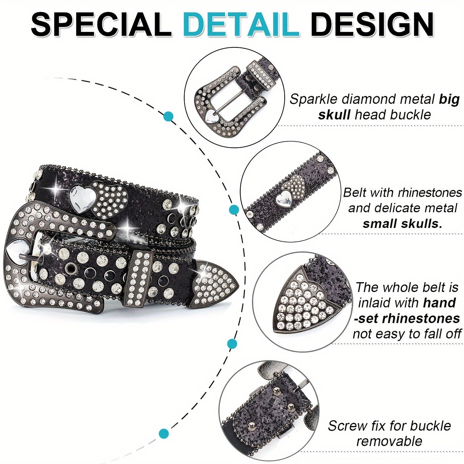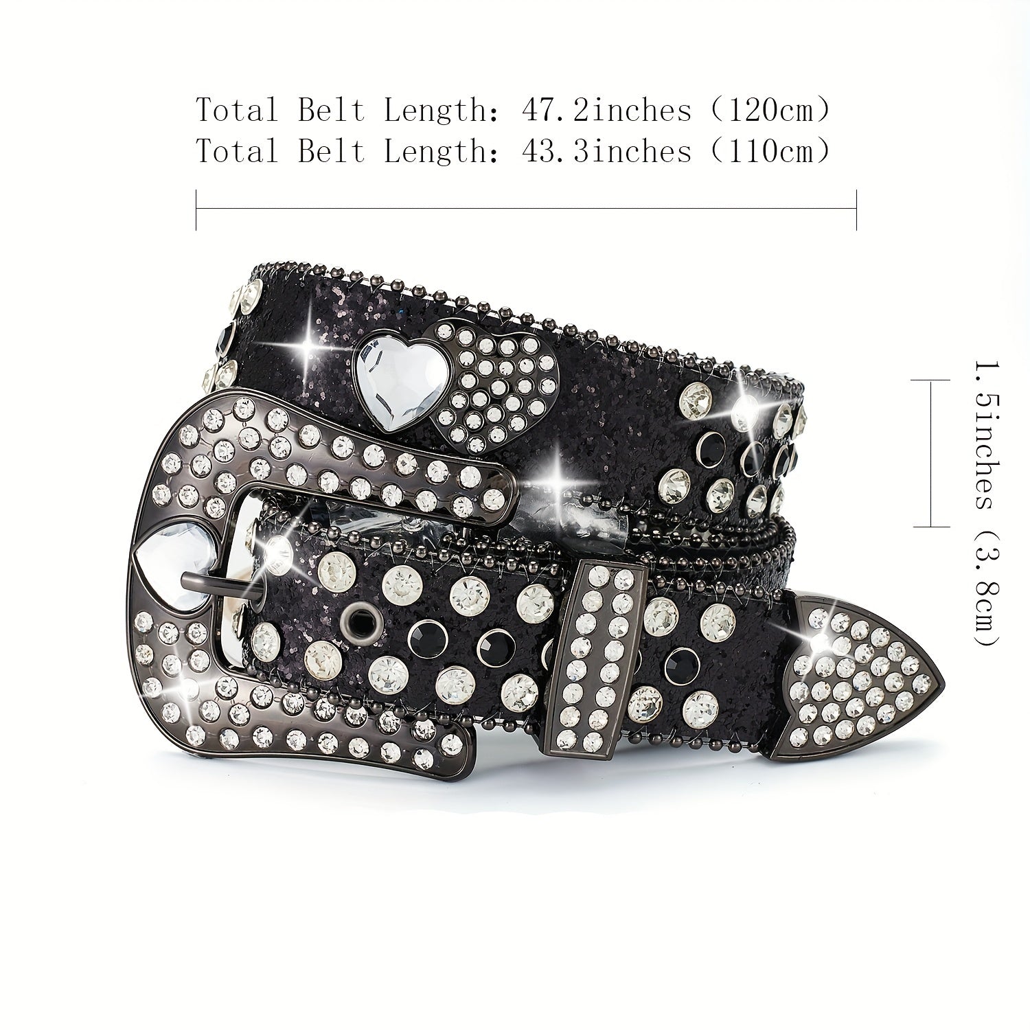 Add a touch of bling to your outfit with this stylish PU leather belt featuring a Love Style buckle adorned with rhinestones.