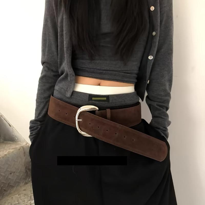 Y2K Western Style Brown Wide Belt Waist Cincher for Women