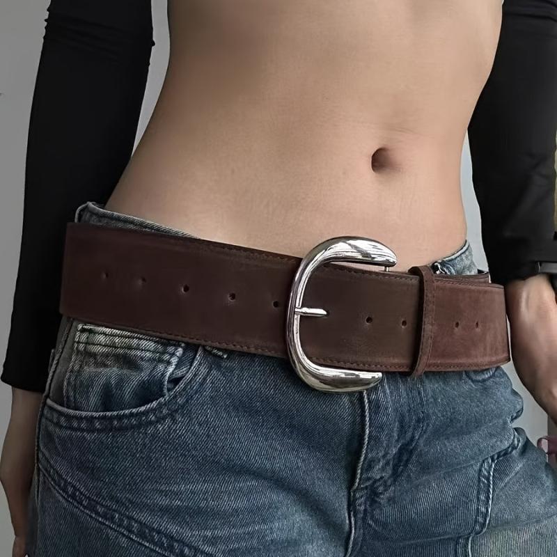 Add a touch of vintage Y2K style to your outfit with this wide brown belt. Made of non-textile materials, this belt features a western-inspired design. It's perfect for adding a cinched waist look to your ensemble.