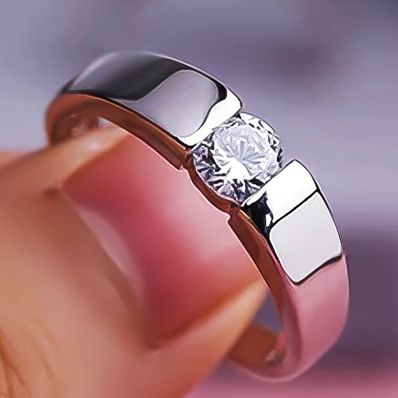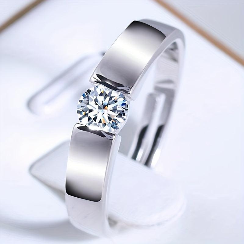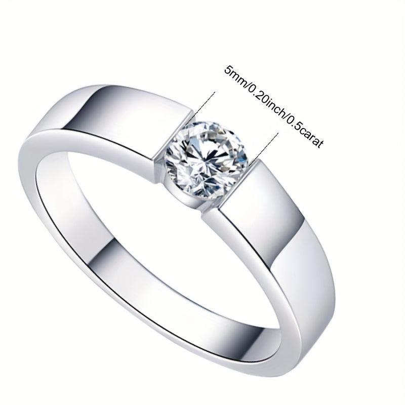 This stunning 0.5ct round synthetic zirconia ring is perfect for weddings, Valentine's Day, or casual attire. Made of durable copper, it's a beautiful and timeless piece.