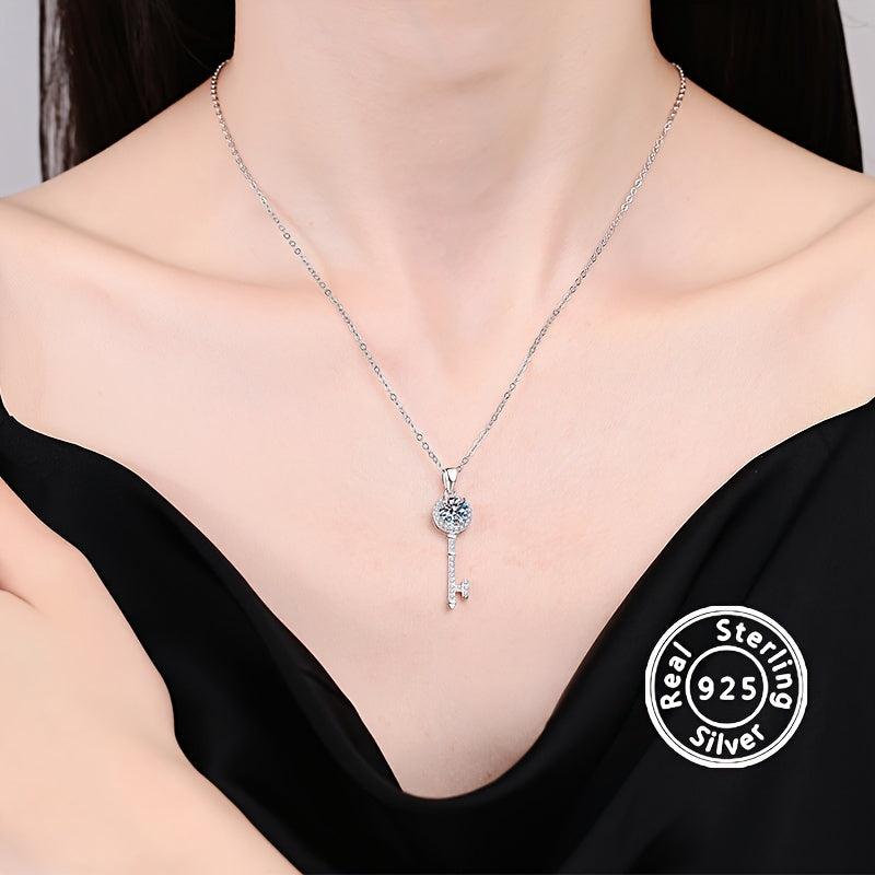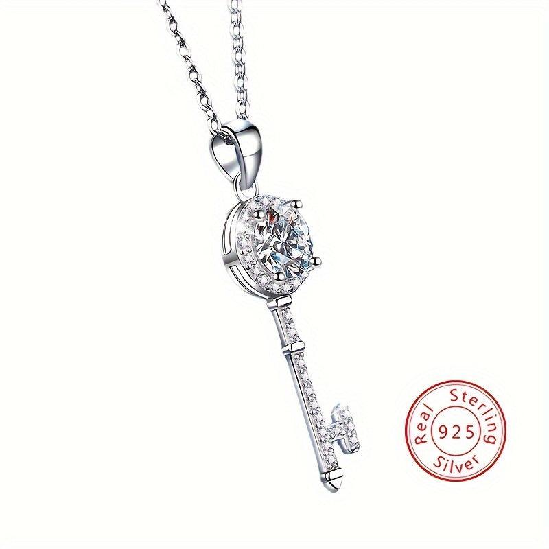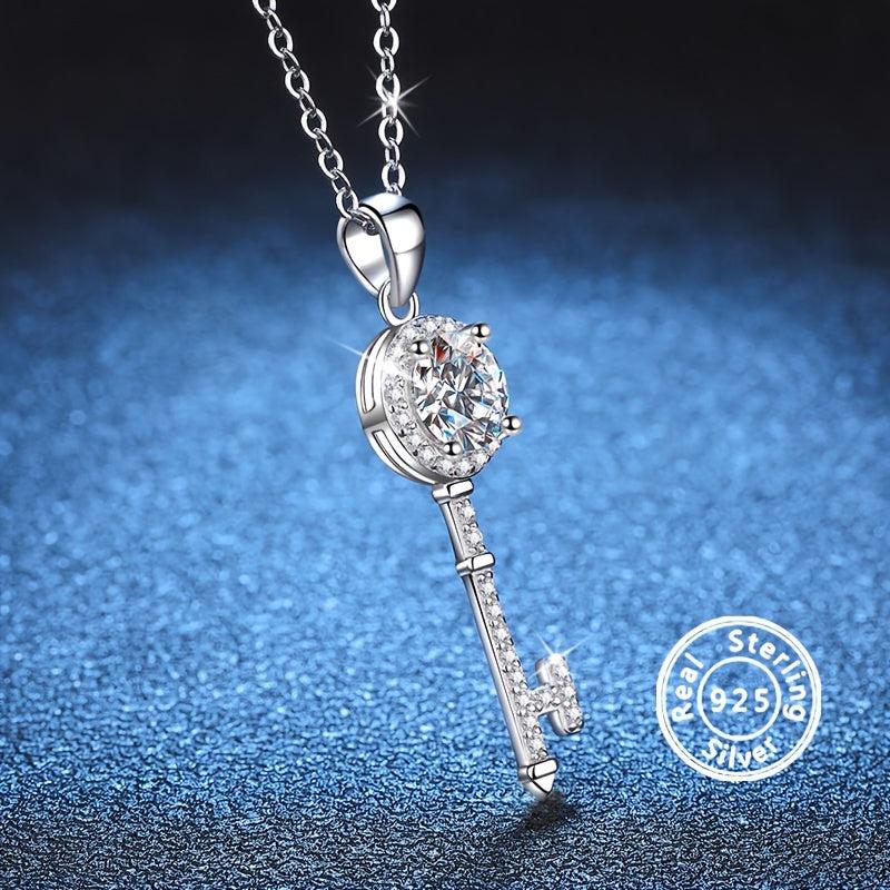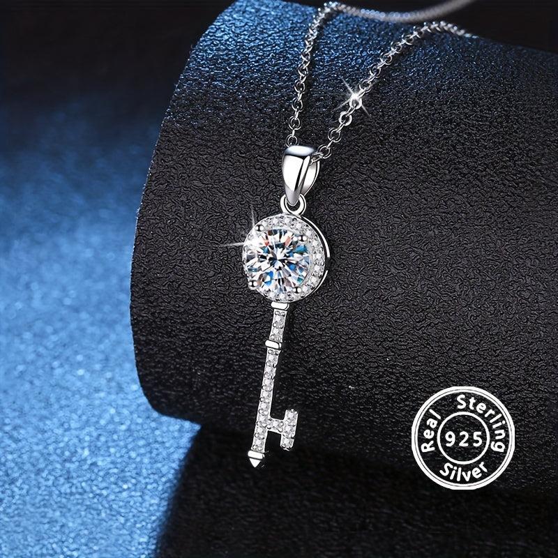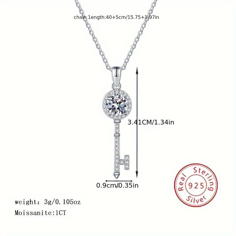 Elevate your style with this stunning 1 carat Moissanite key pendant necklace. Crafted from 925 sterling silver and plated in 18K gold, it is perfect for parties and daily wear. Make a statement at any event with this elegant accessory!