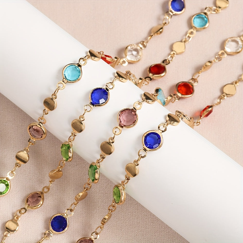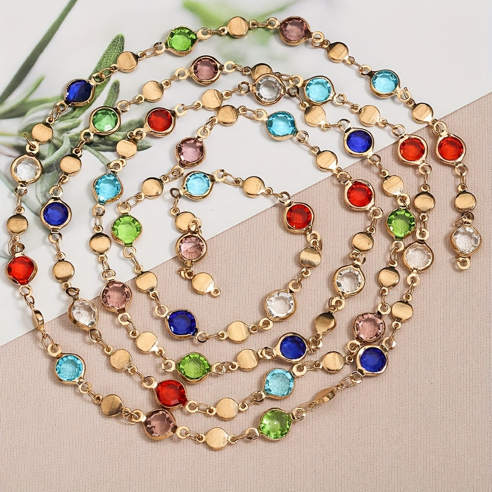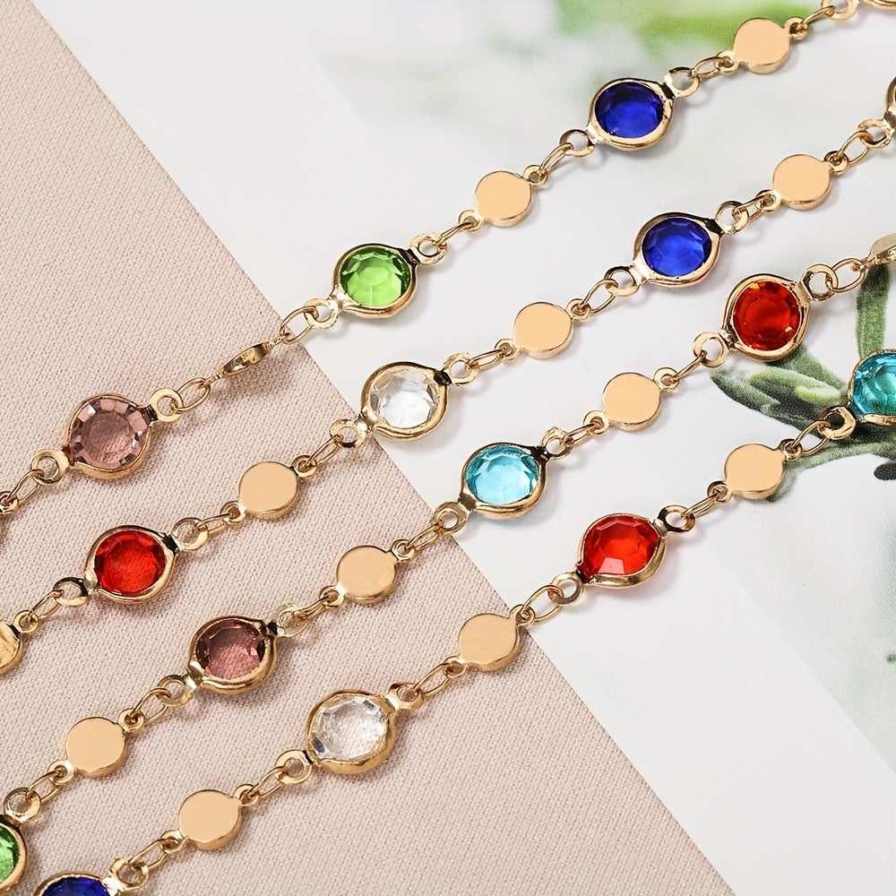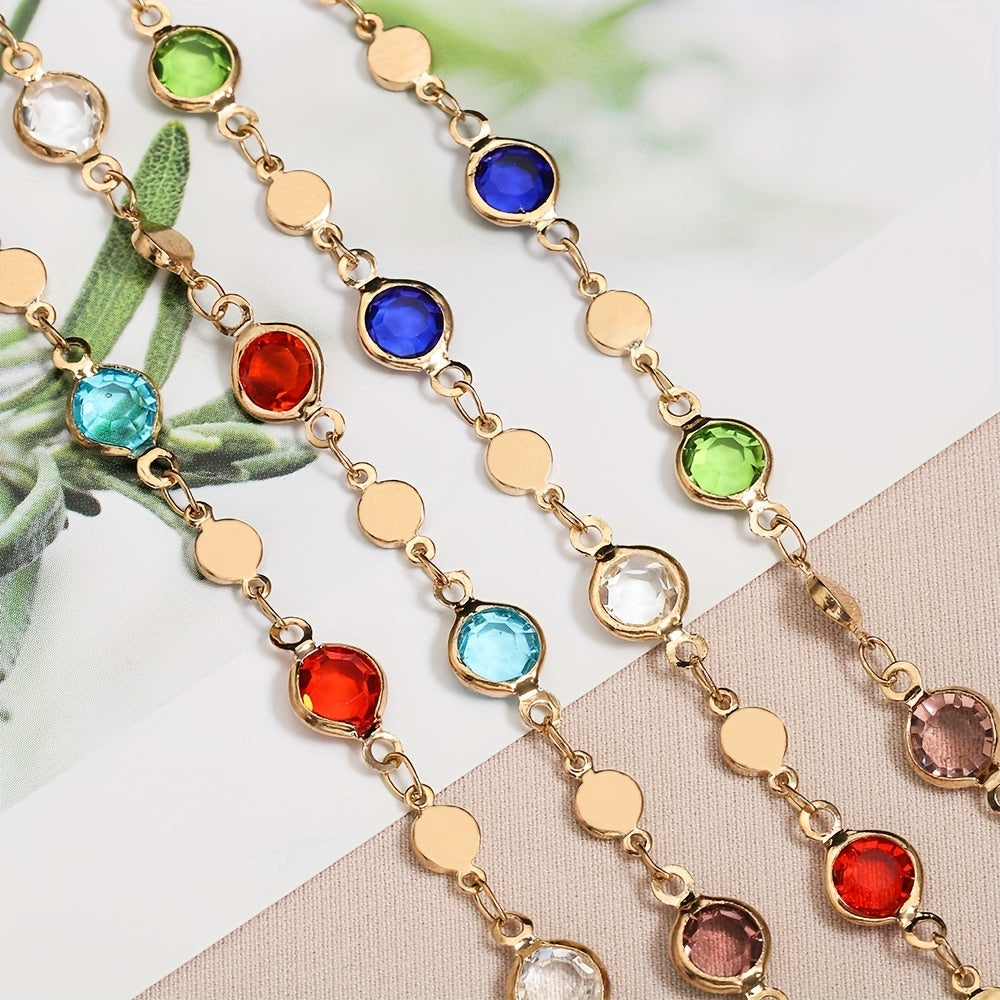 This 1 meter colorful round crystal clip copper chain is perfect for creating your own women's bracelets and necklaces. The supplies are high-quality and versatile.