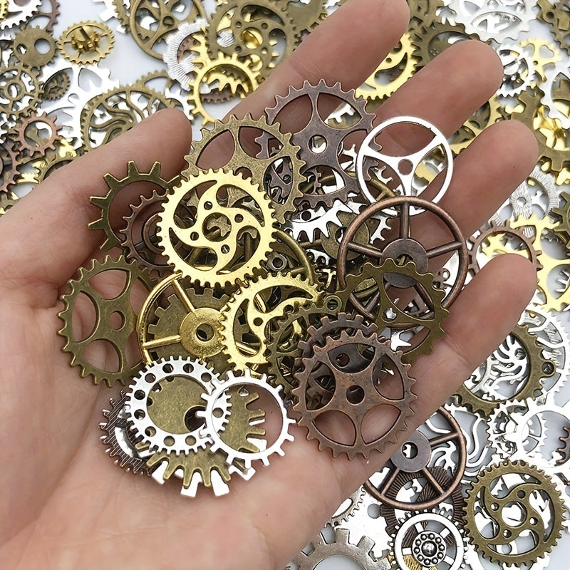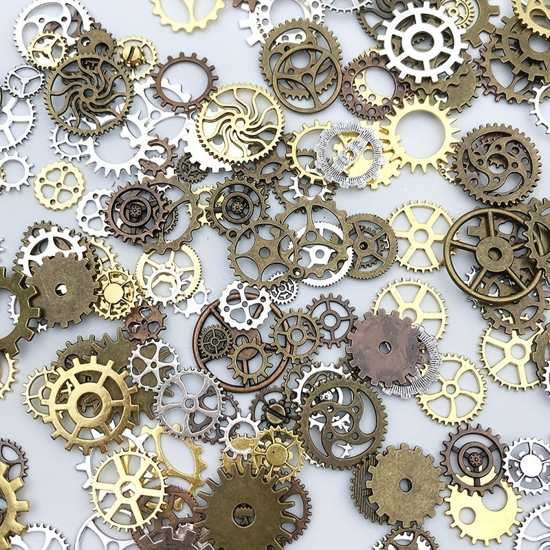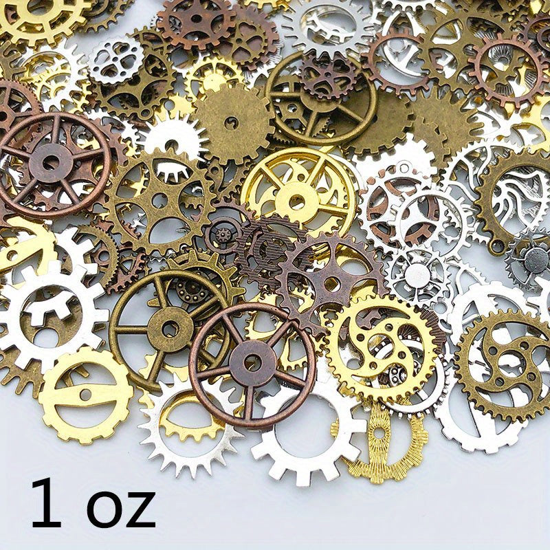 Get a 1 oz pack of assorted metal mechanical steampunk cogs and gears charms for your DIY jewelry making projects. Mix sizes add variety to your designs.