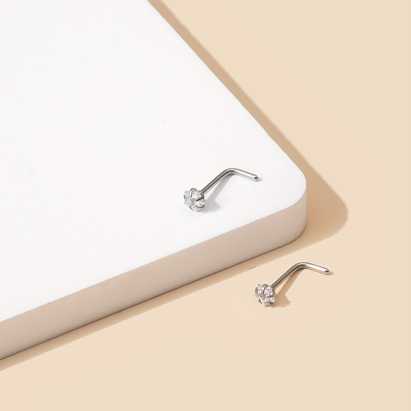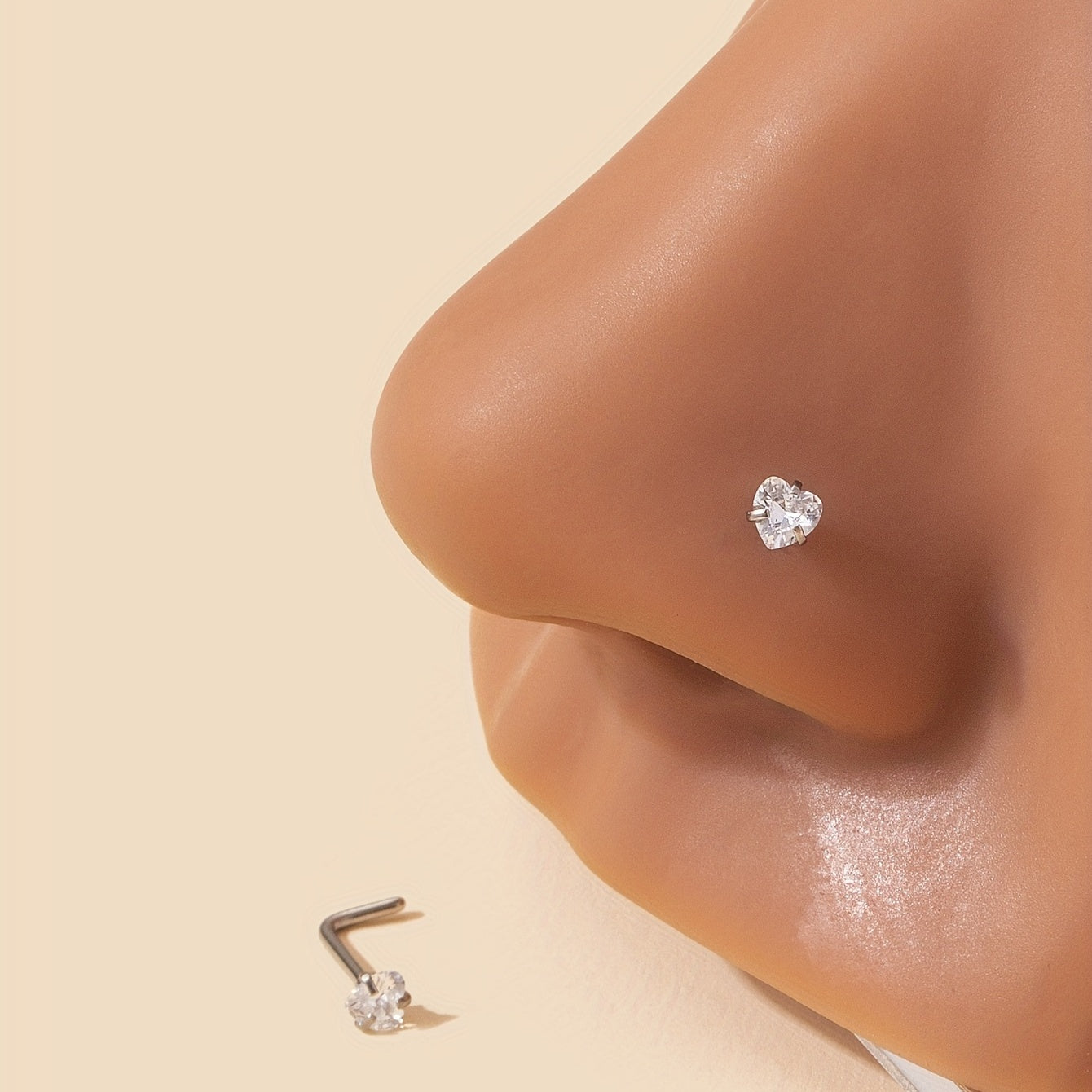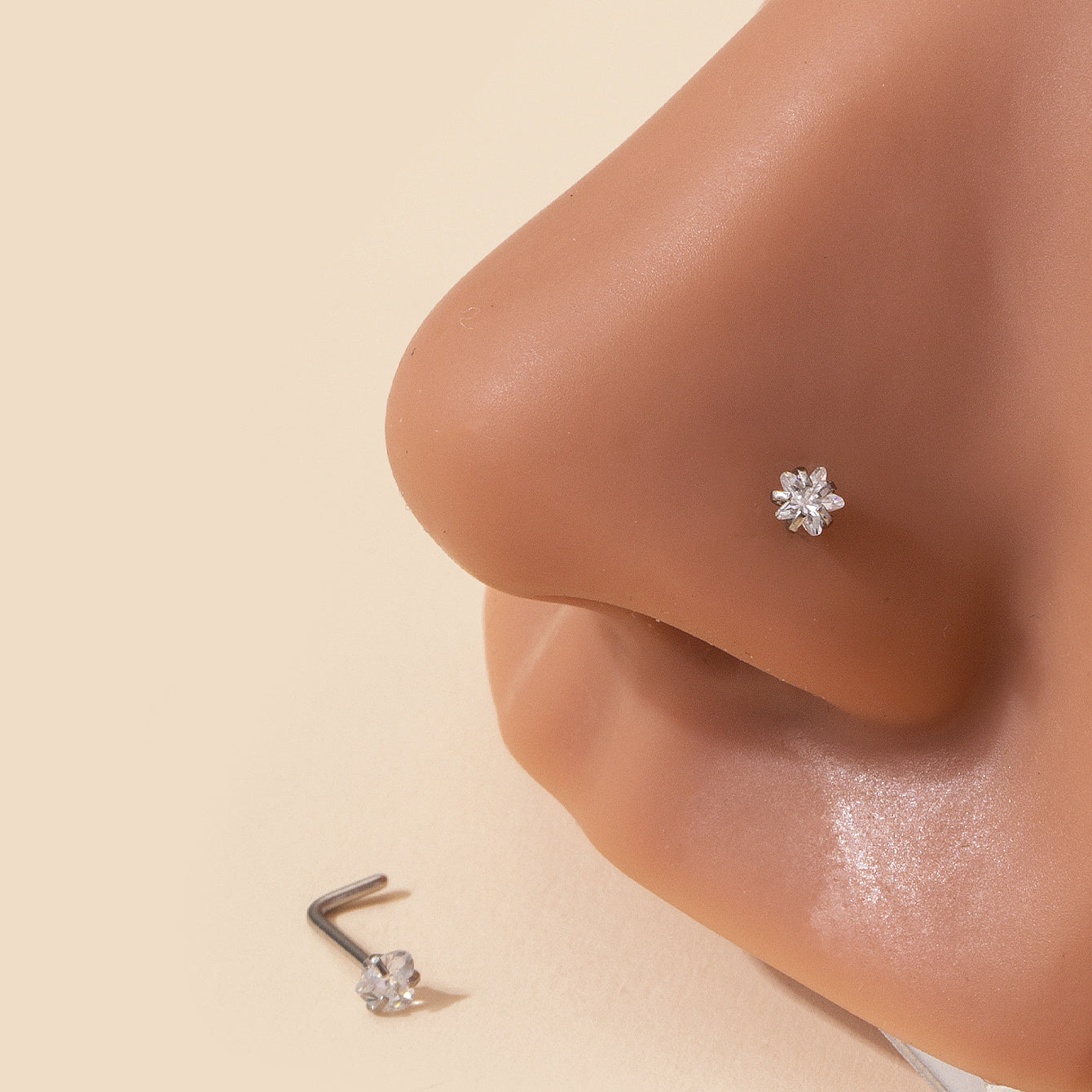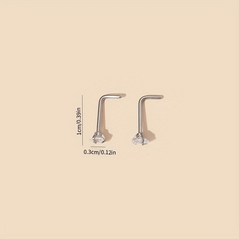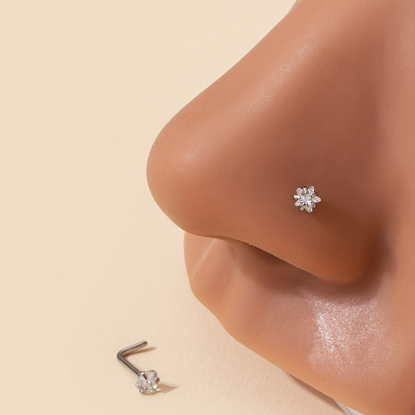 Add a touch of sparkle to your nose with this L shape nose ring featuring star-shaped zircon inlay. Made from durable stainless steel.