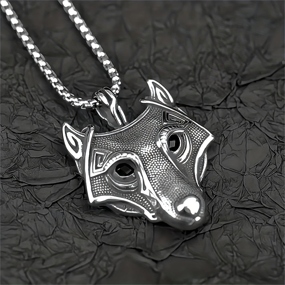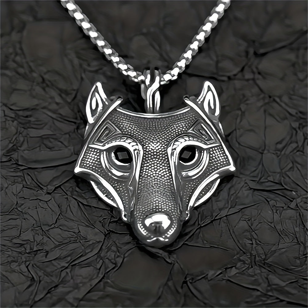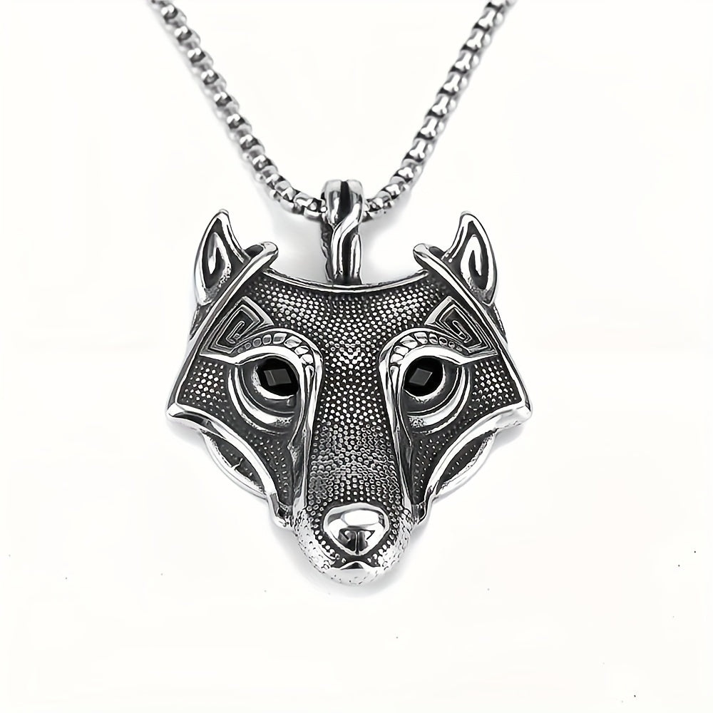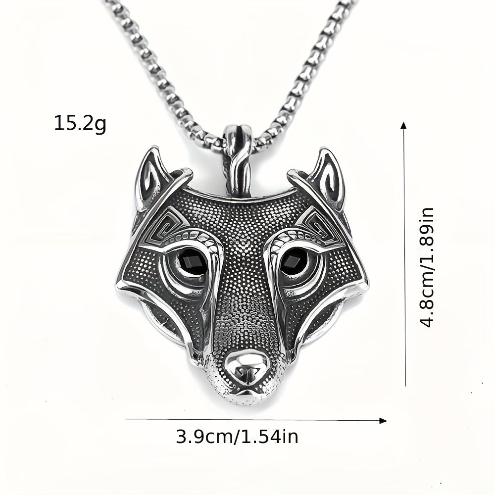 This necklace for men features a Viking hemp dot wolf head pendant made of titanium steel. It comes with a 23.6-inch stainless steel square pearl necklace, perfect for a stylish look.