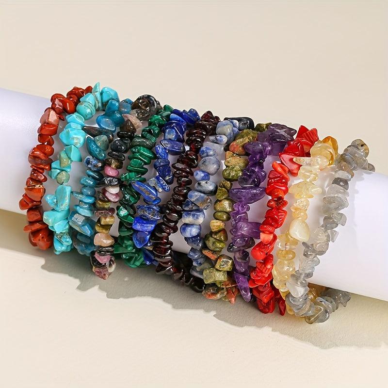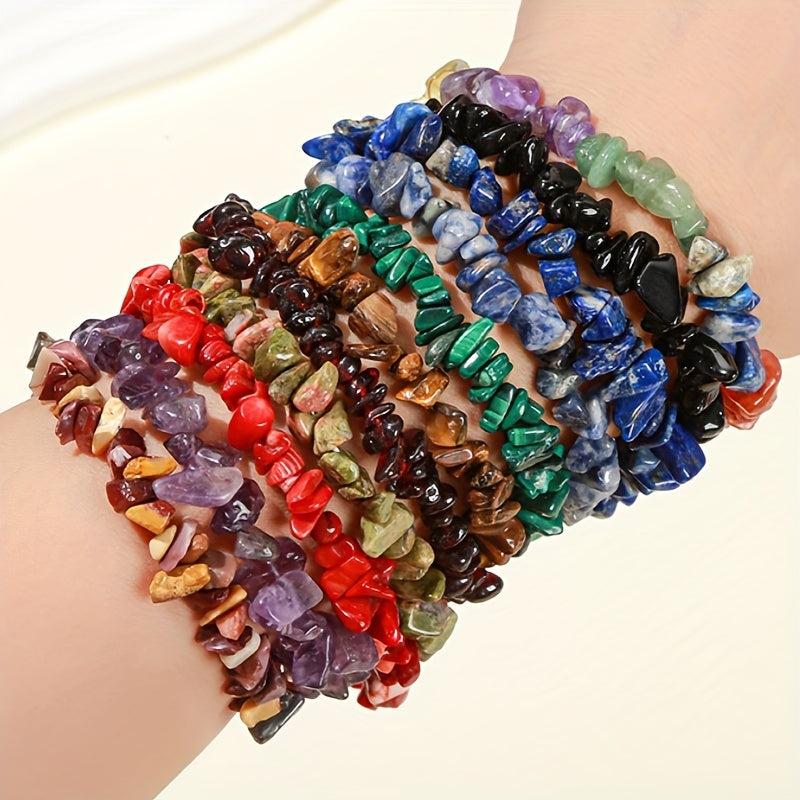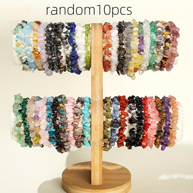 Elevate your style with this 10-pack bracelet set featuring assorted natural stone beads. Perfect for daily wear, these elastic stretch bracelets are ideal for a boho or tribal look. Each bracelet is unique and includes gems like Amethyst.