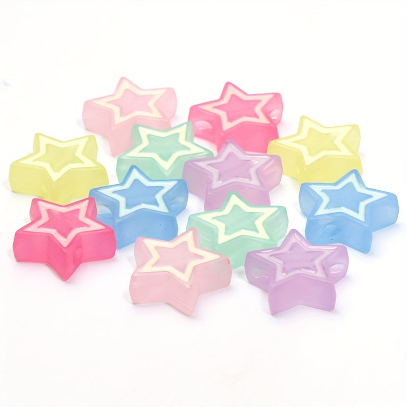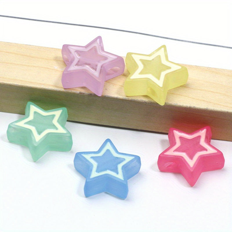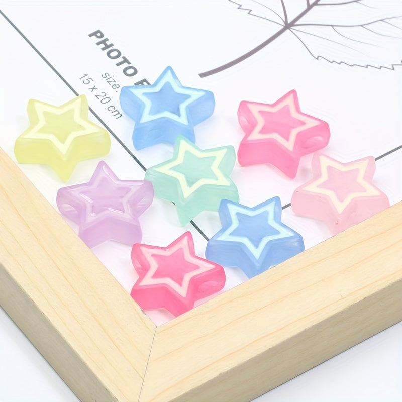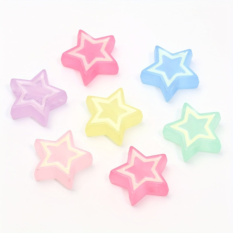Get creative with these 10 pieces of 22mm mixed double layer acrylic large star beads. Perfect for DIY bracelets, necklaces, mobile phone chains, and accessories.