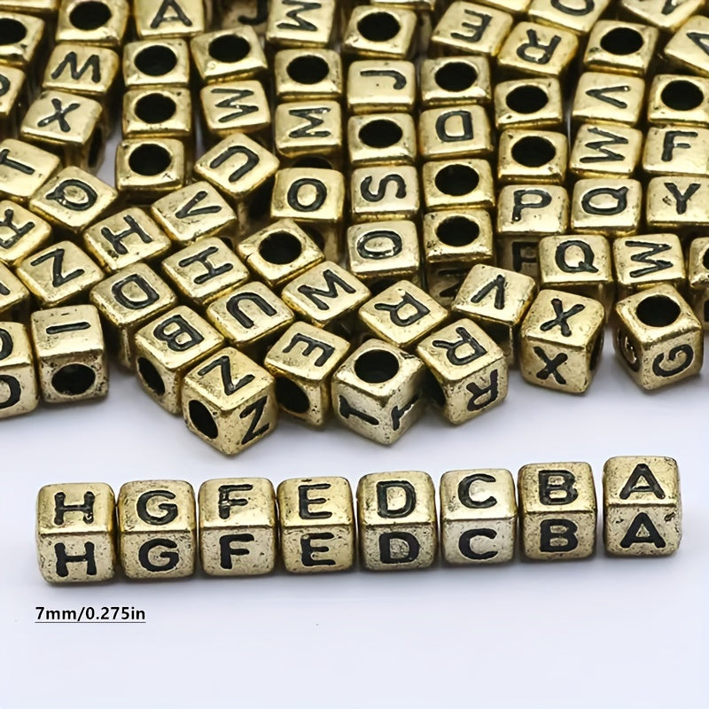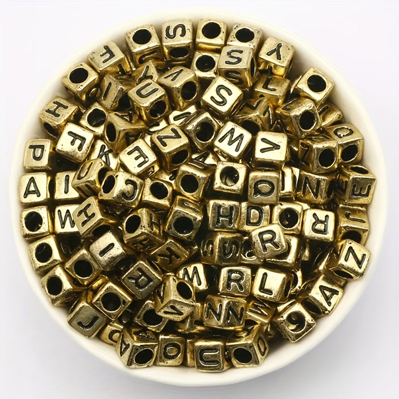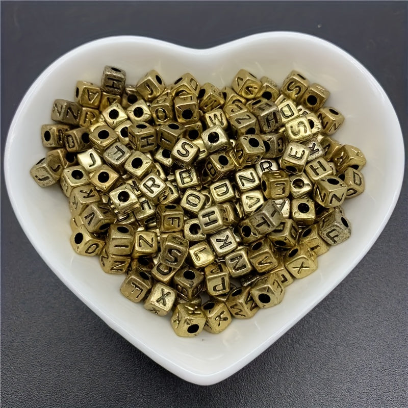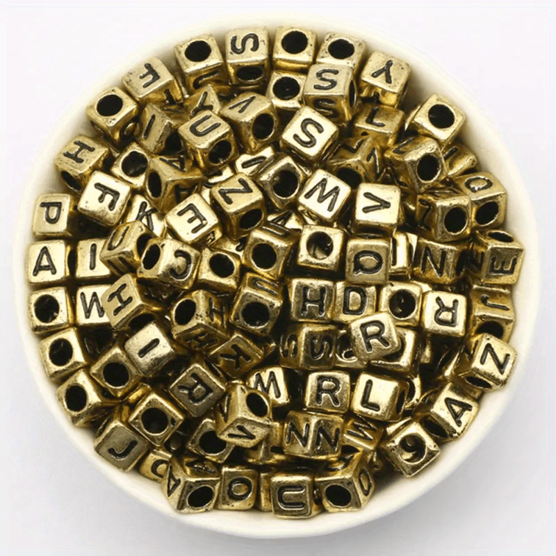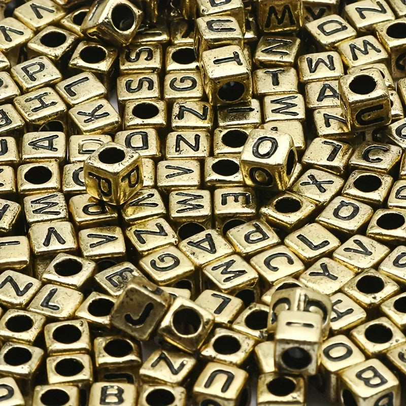Add a vintage touch to your jewelry creations with these 7mm antique golden mixed letter acrylic beads. Perfect for bracelets, necklaces, and more!
