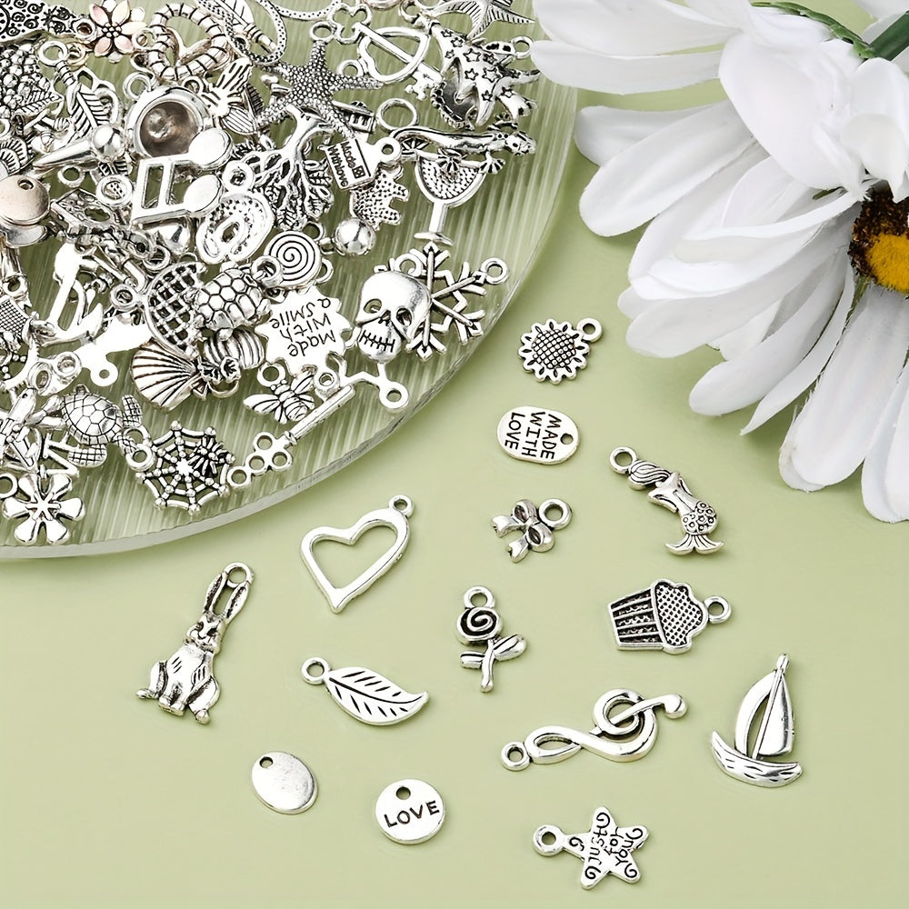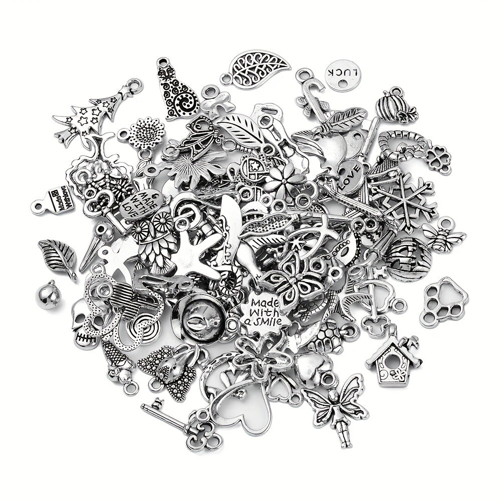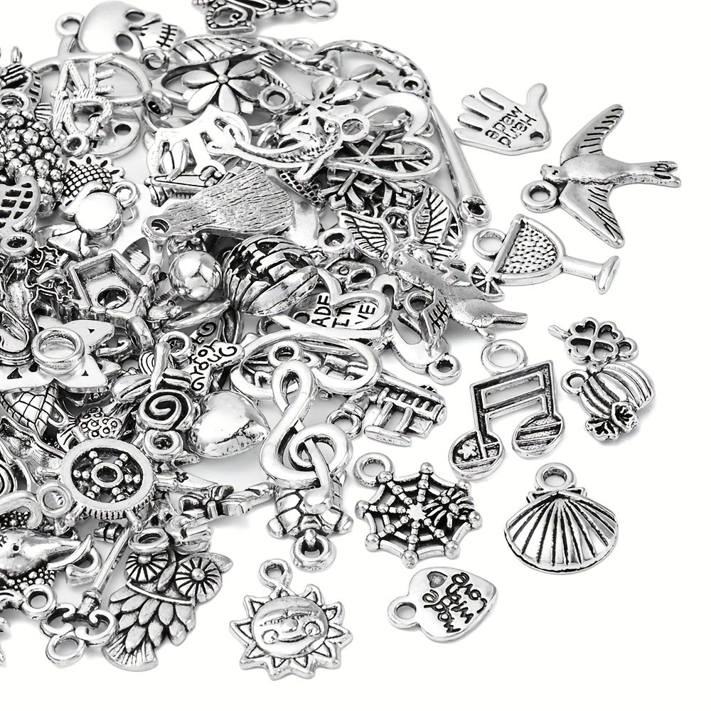 Get a pack of about 100 random mix small pendants perfect for crafting bracelets, earrings, and necklaces. These retro-style zinc alloy pendants add a unique touch to your jewelry creations.