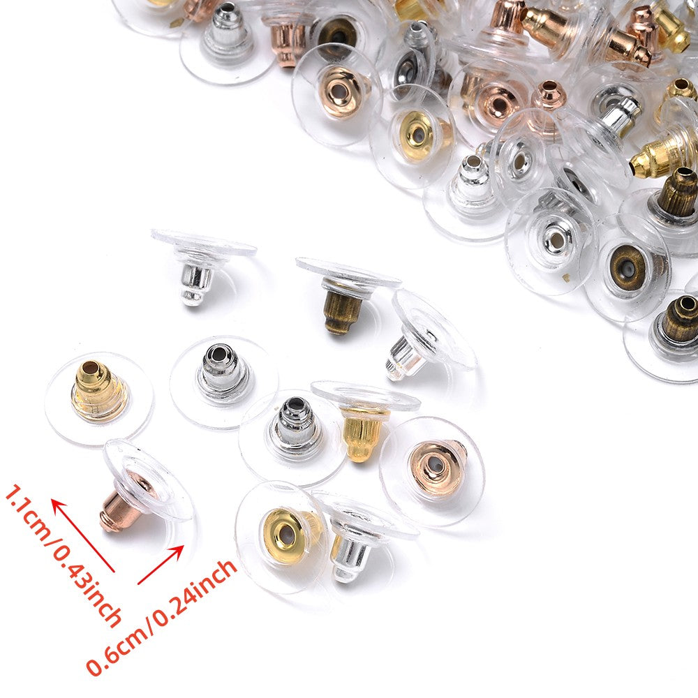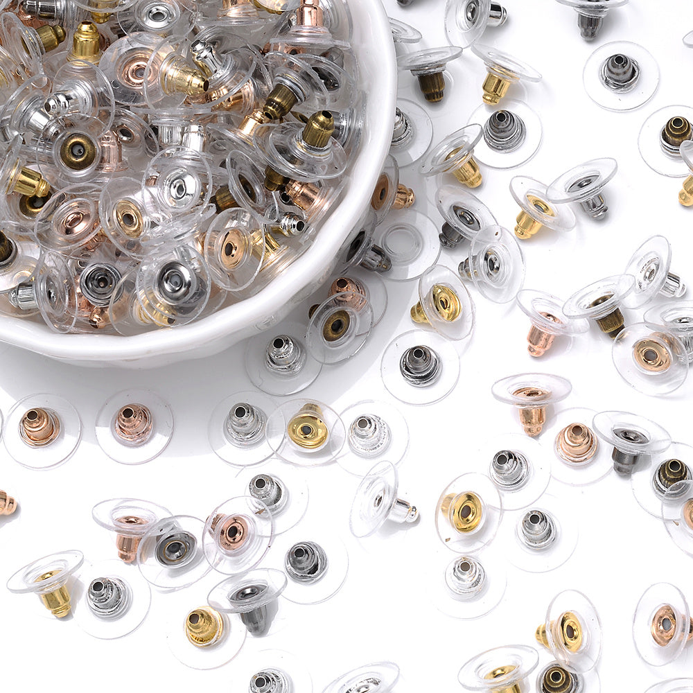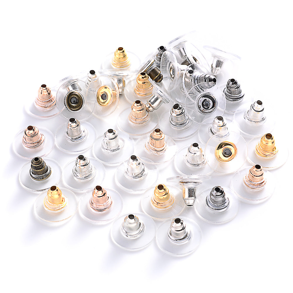 Get this set of 100 metal rubber earring backs to secure your earrings. Perfect for DIY jewelry projects and repairs.
