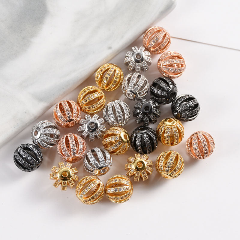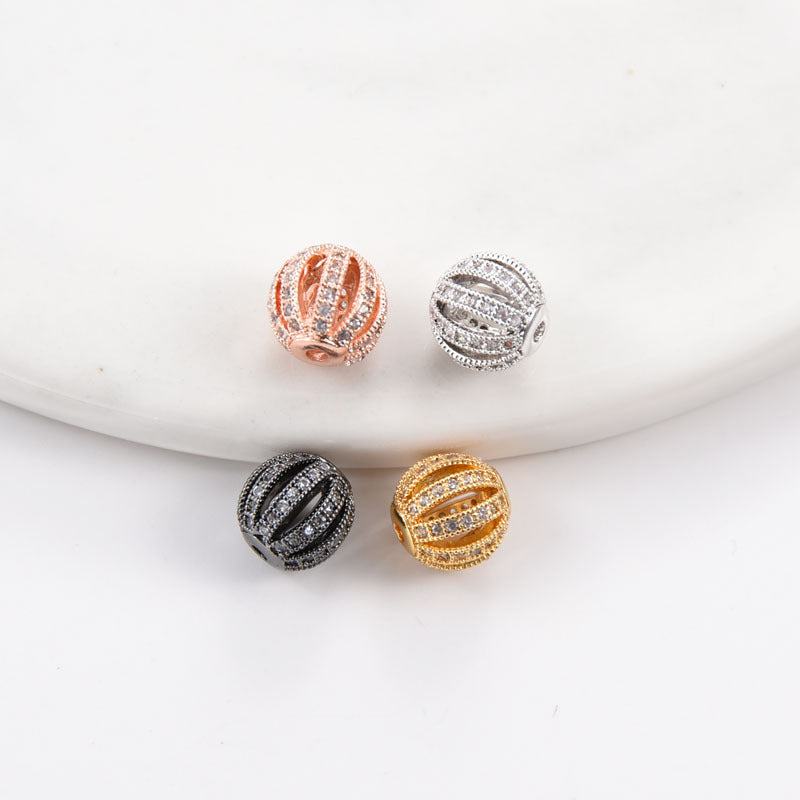 Add a touch of sparkle to your jewelry creations with these 10mm brass micro pave cubic zirconia ball round beads. Perfect for bracelets and other DIY projects.