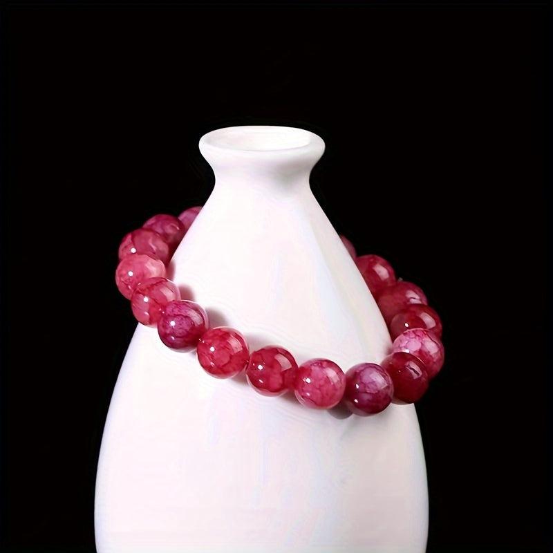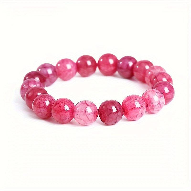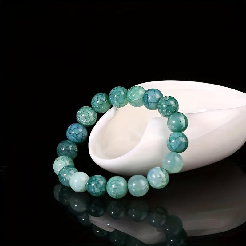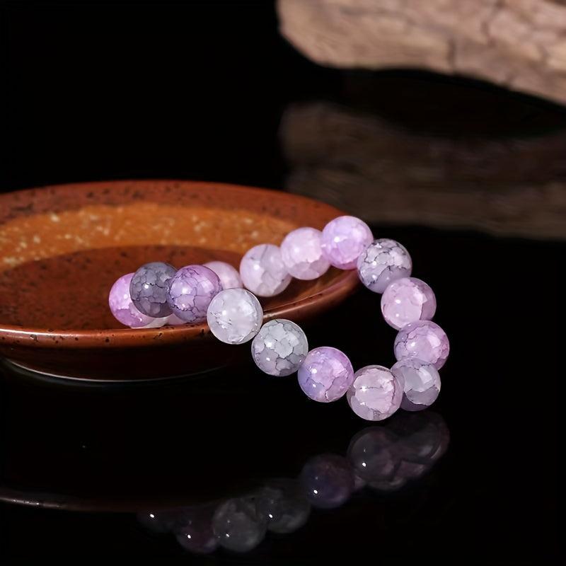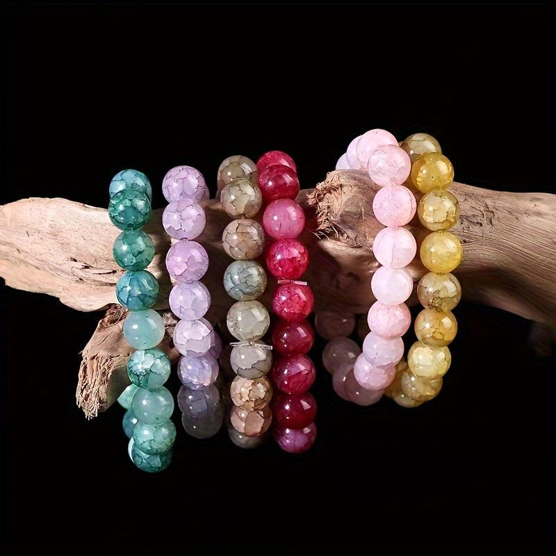 This 10mm crackle glass bead bracelet is a versatile piece that can be worn all season. It makes a great gift for her.