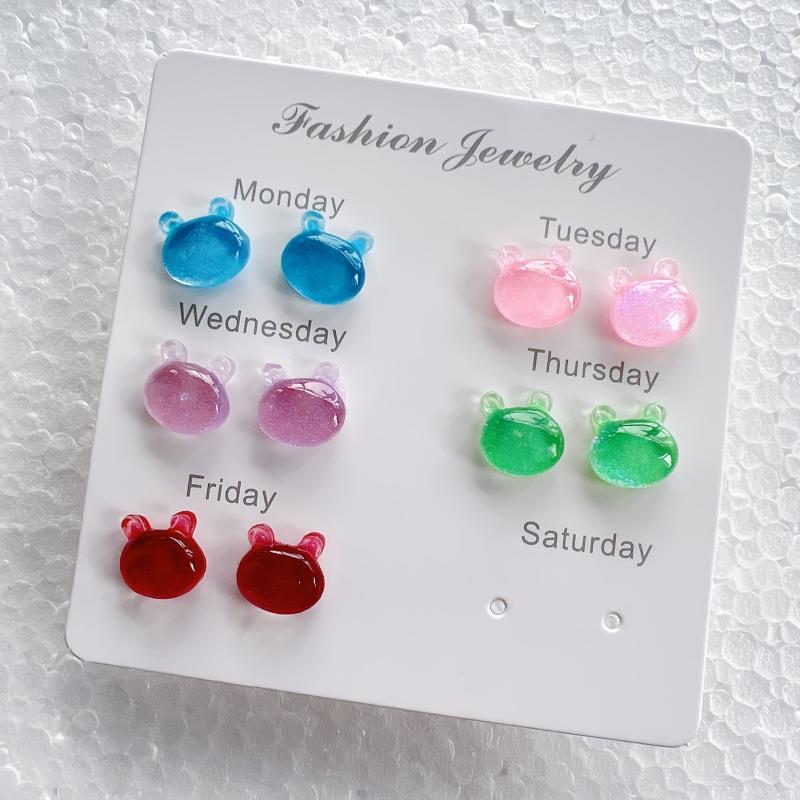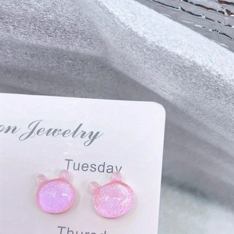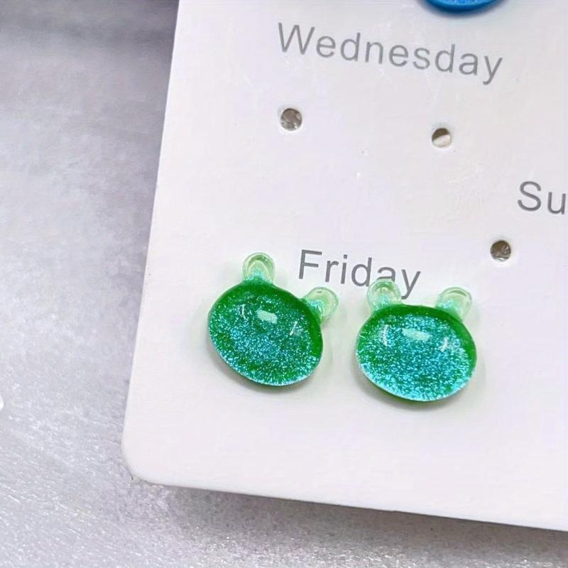 Add a playful touch to your everyday and sports wear with this set of 10 cartoon bear shaped earrings. Made with hypoallergenic plastic posts, these earrings are perfect for those with sensitive ears.