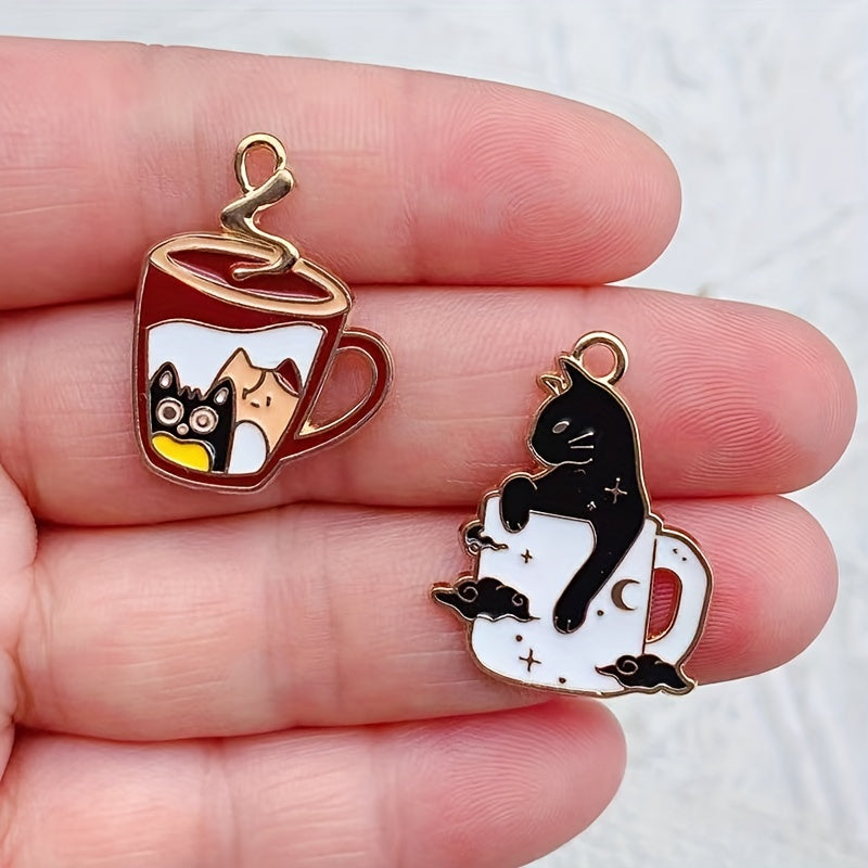 Add a touch of feline charm to your DIY projects with these 10pcs cat pendants. Made from enamel alloy, these cat charms are perfect for keychains, necklaces, and other jewelry accessories.