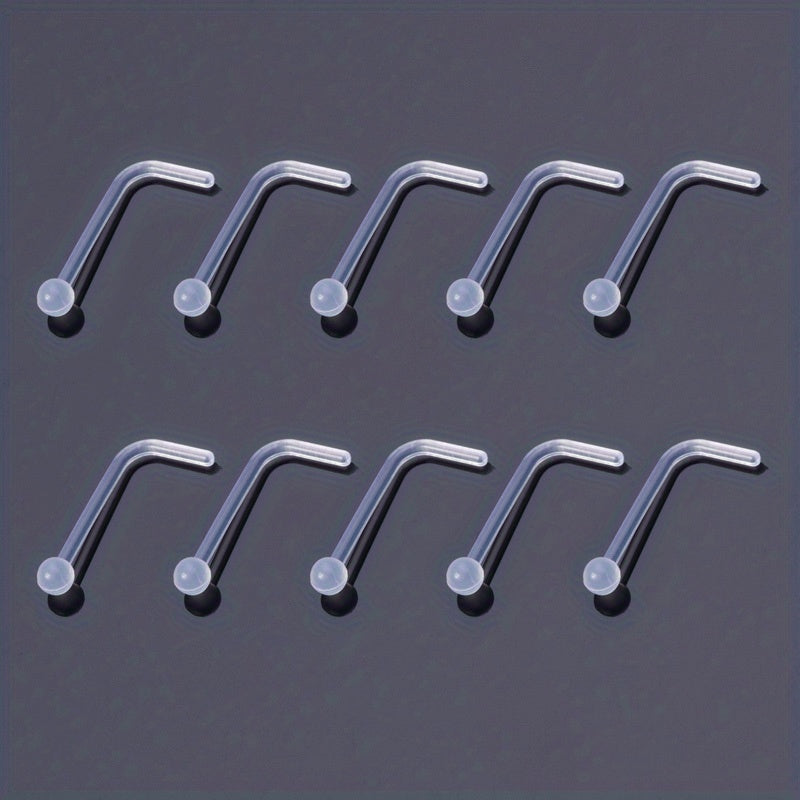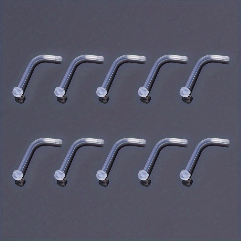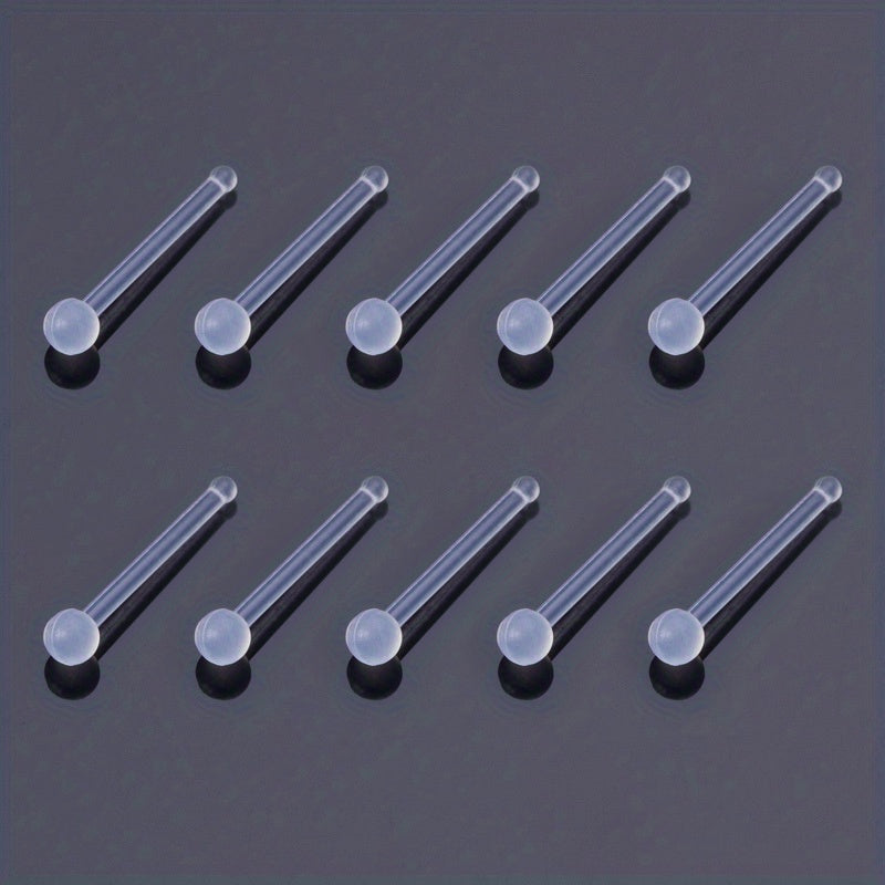 These nose stud earrings are made of clear acrylic material, providing a transparent and invisible look. Ideal for nostril piercings and ear piercings, great as body jewelry.