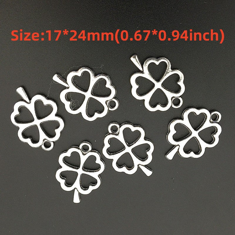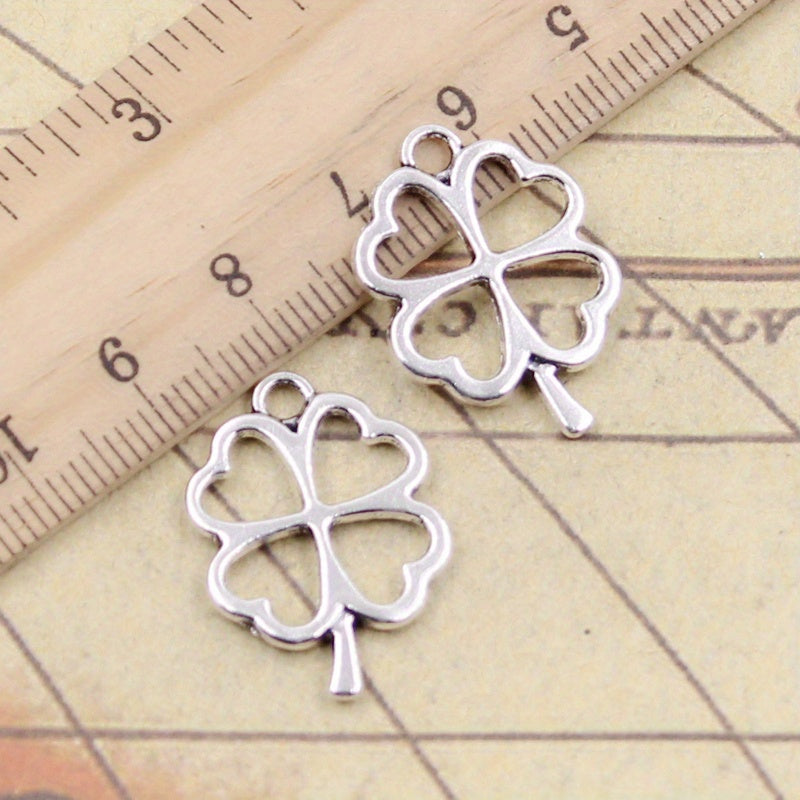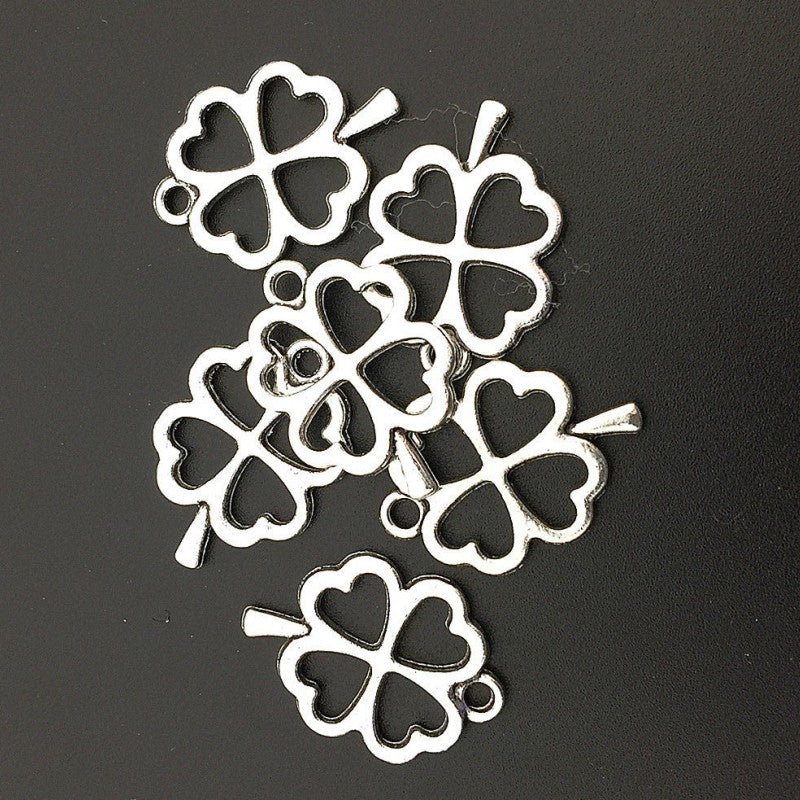 These charms are perfect for jewelry making and DIY crafts. They feature a lucky Irish four leaf clover design in an antique Tibetan bronze and silver finish.