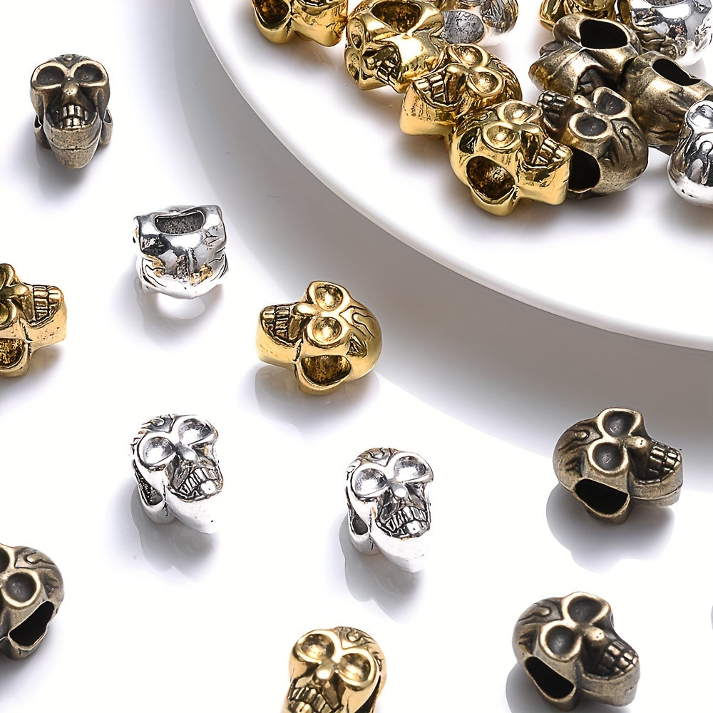 These metal skull beads with a big hole are perfect for creating unique bracelets, necklaces, and other jewelry pieces. Add a touch of edgy style to your designs with these skeleton spacer beads.