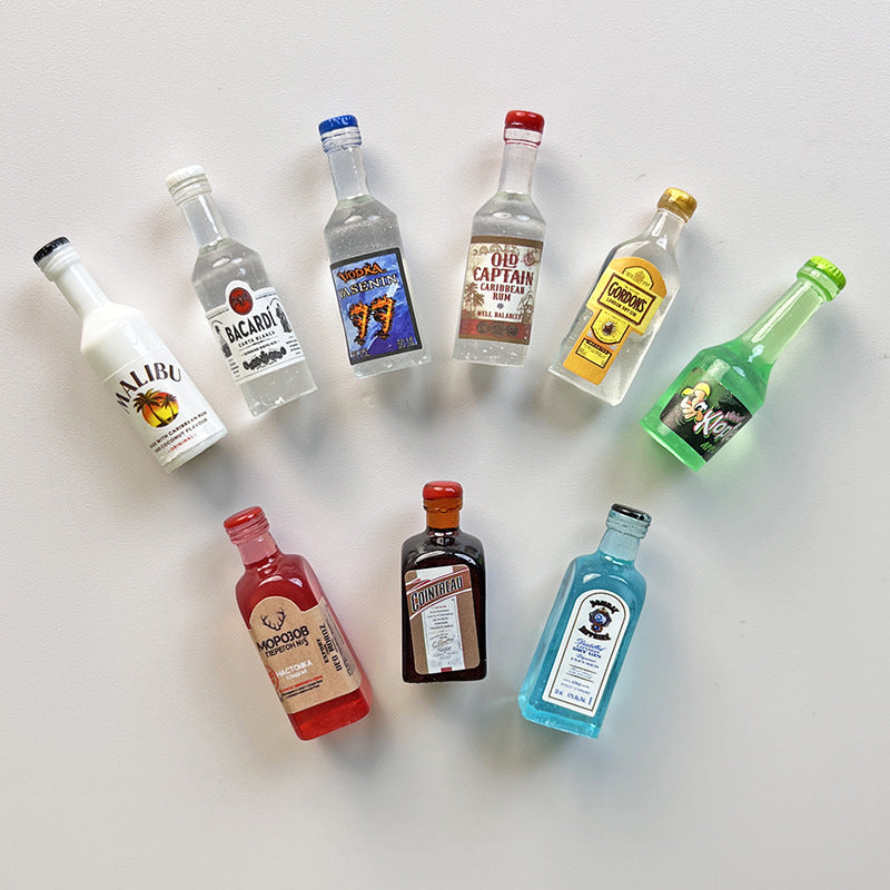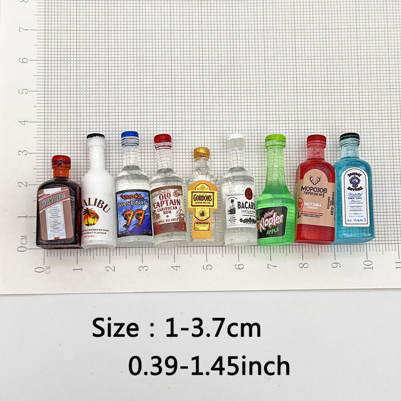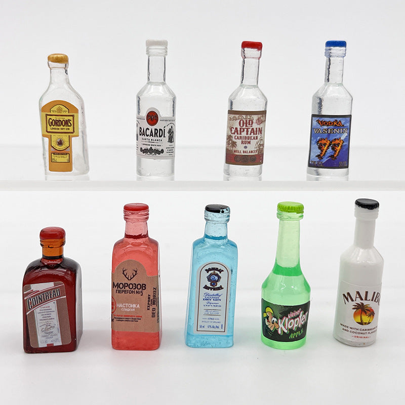 Add a touch of realism to your miniature scenes with this set of 10 mixed mini resin liquor bottles. Perfect for dollhouses, fairy gardens, and model scenes.