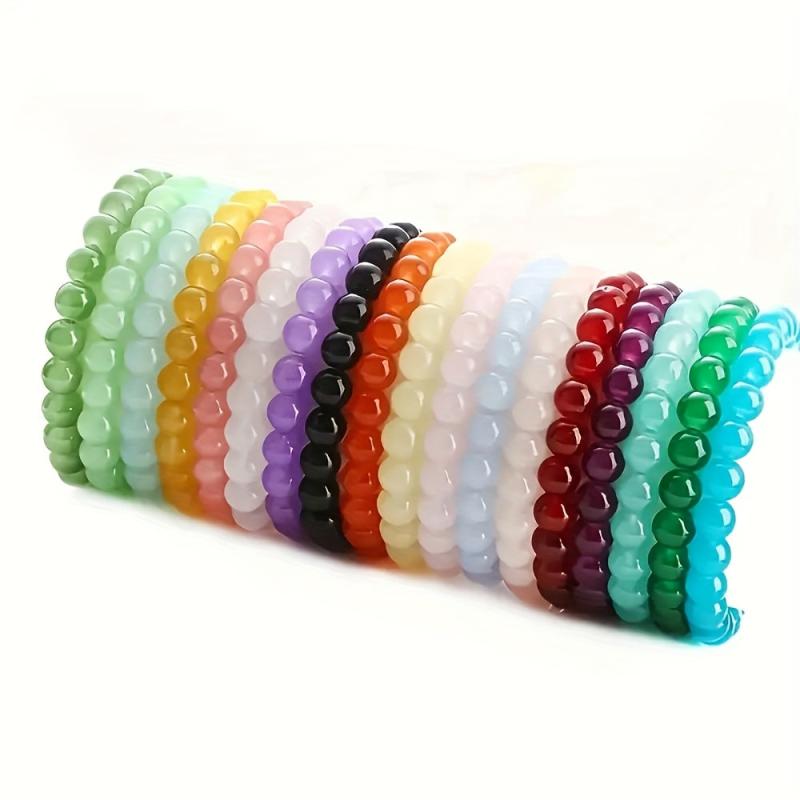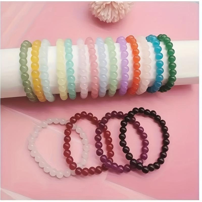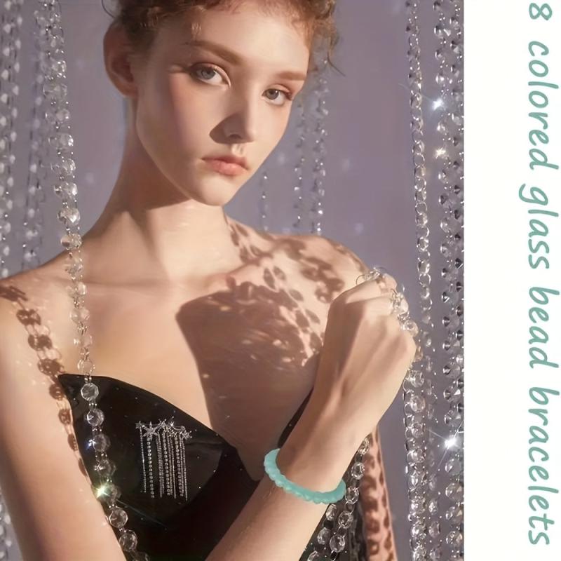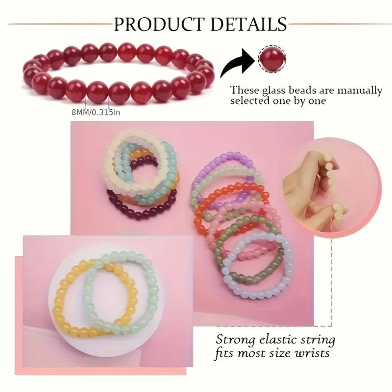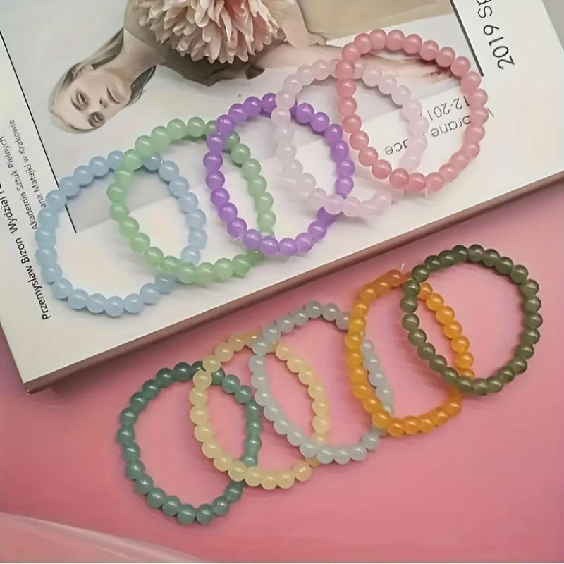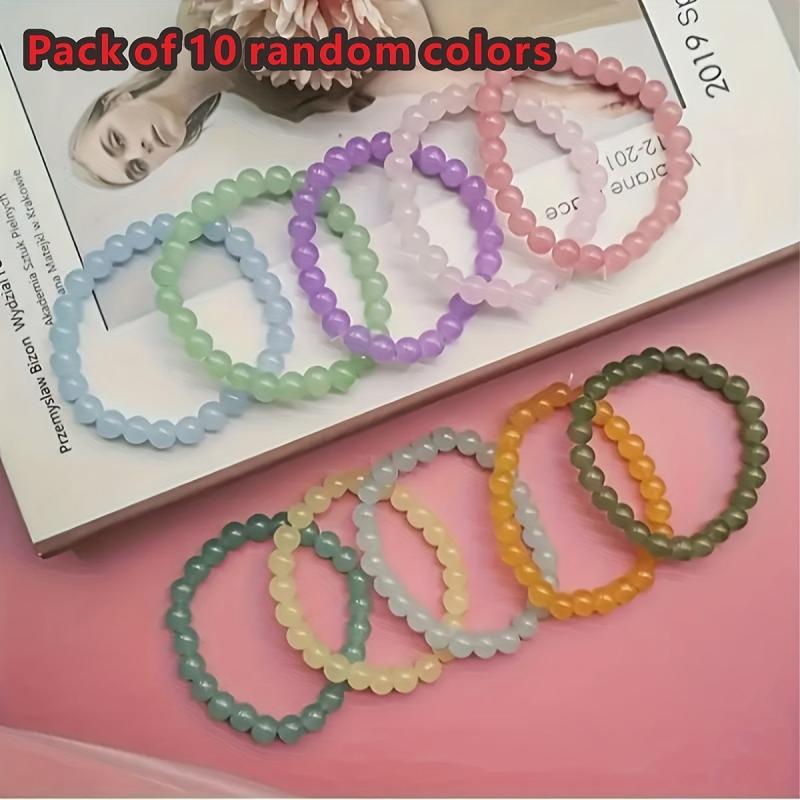 Add a pop of color to your outfit with these bohemian style glass bead bracelets. Each set includes 10 stretchy bracelets in various vibrant colors.