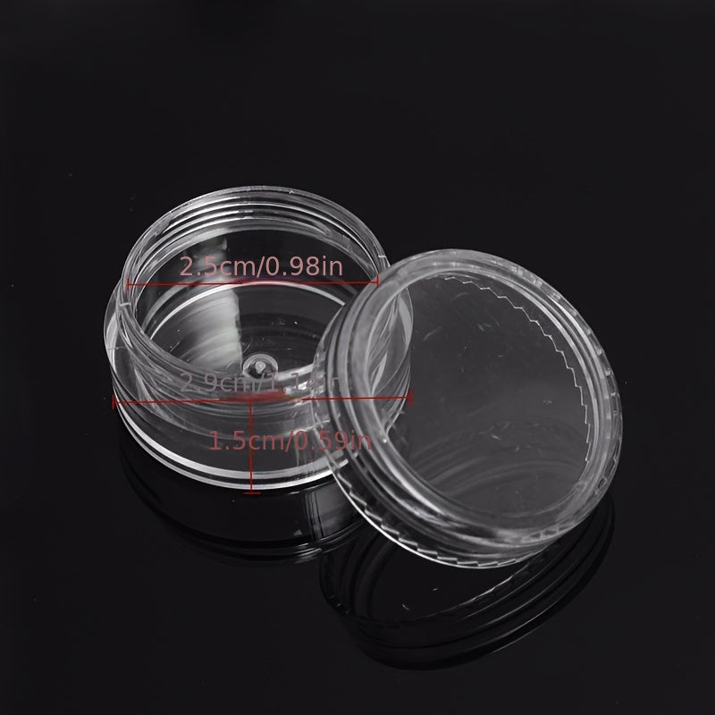 Keep your small items organized with these transparent round plastic storage boxes. Each box is perfect for storing beads, jewelry, small screws, and other tiny items.