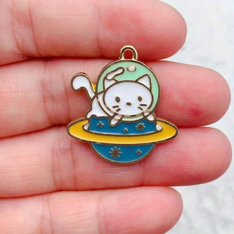 Add a cosmic touch to your jewelry creations with these adorable space cat charms. Perfect for earrings, necklaces, and bracelets. Each pack contains 10 charms.