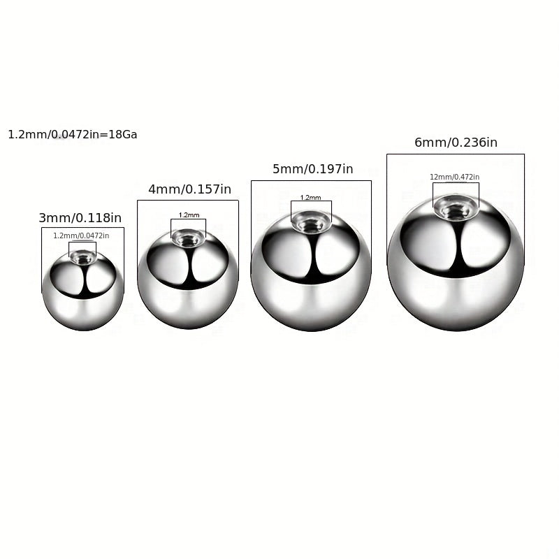 Get this bag of 10 stainless steel threaded balls for your jewelry accessories. Perfect for replacing lost balls on earrings, lip, eyebrow, or belly button jewelry.